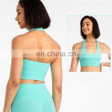 Wholesale Sexy Neck Hung Crop Top Women Athletic Fitness Yoga Gym Bra Sportswear Apparel Ladies Training Running Bra Vest Top