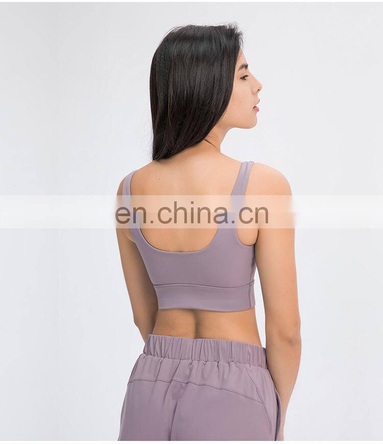 New Arrival Custom Logo Breathable Sexy Strap Yoga Crop Top Women Gym Sports Wear Bra Top Workout Fitness Nude Feeling Tank Top