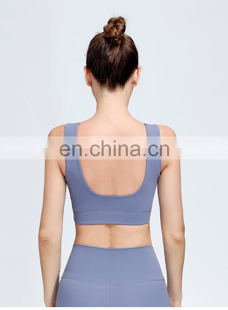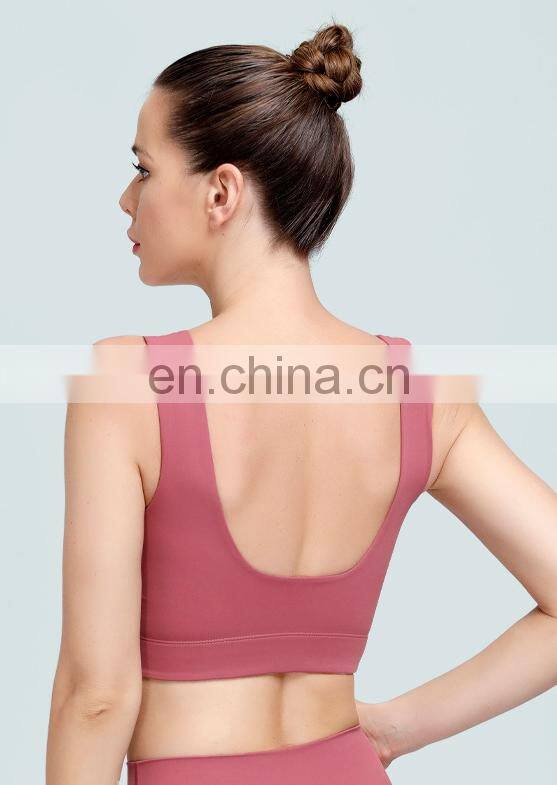 Home > Products > Sports Bra > Wholesale Blank Custom U Back Gym Sports Bra Anti-bacterial Nude Feeling Fitness Running Bra Top Women Yoga Dance Wear Apparel
