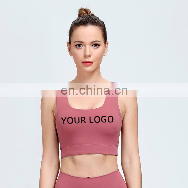 New Arrival Custom Logo Breathable Sexy Strap Yoga Crop Top Women Gym Sports Wear Bra Top Workout Fitness Nude Feeling Tank Top