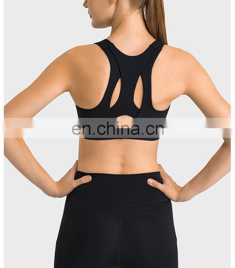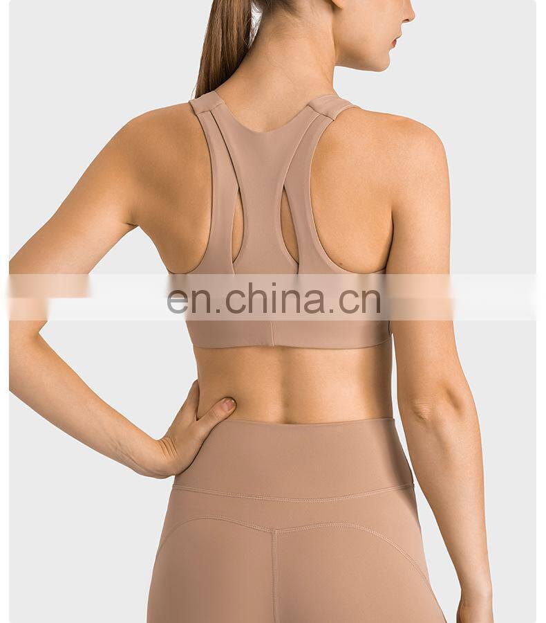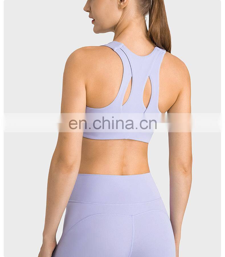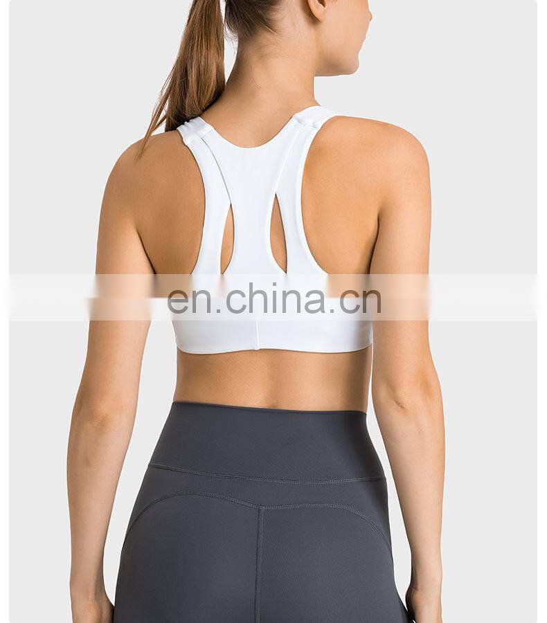 Women Shockproof Sexy Straps Sports Yoga Bra Ladies Outdoor Training Gym Top Nylon Spandex Front Zipper Exercise Wear Clothes