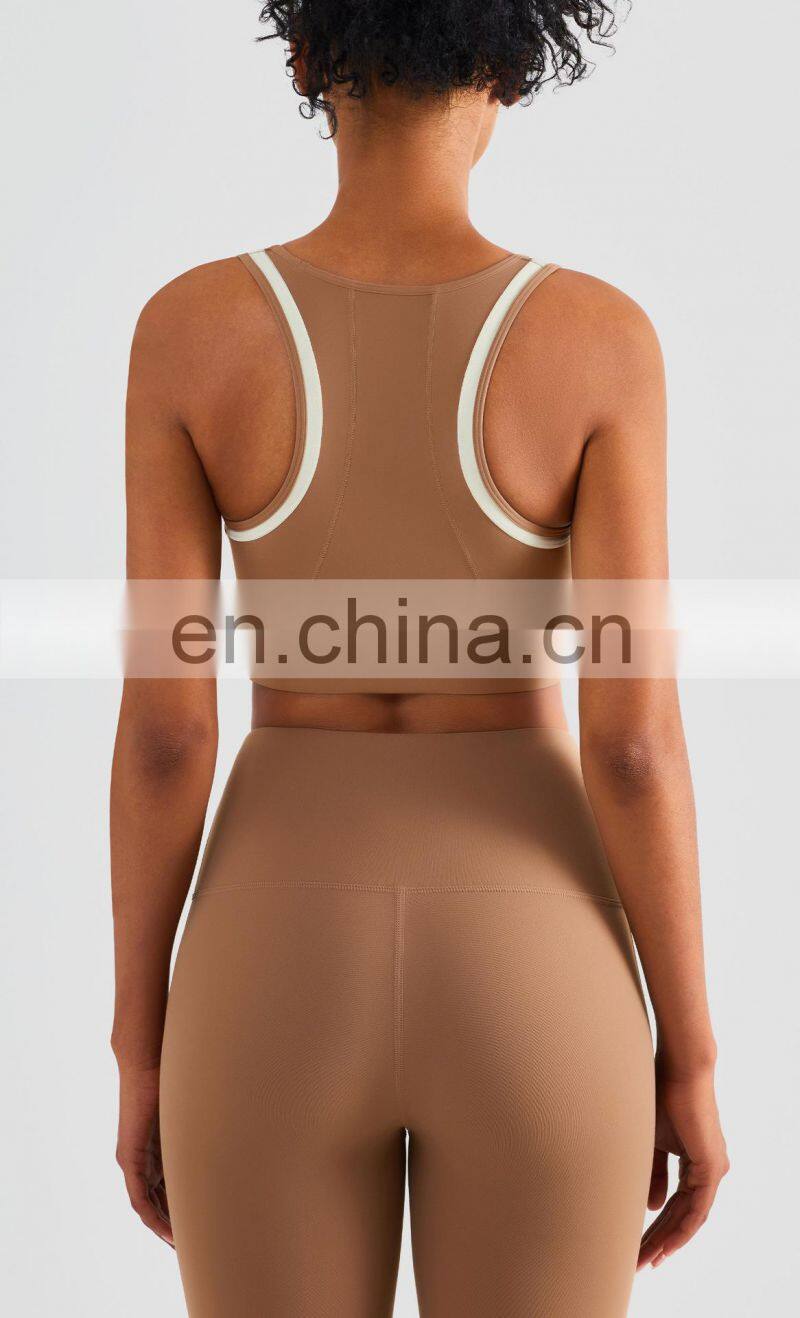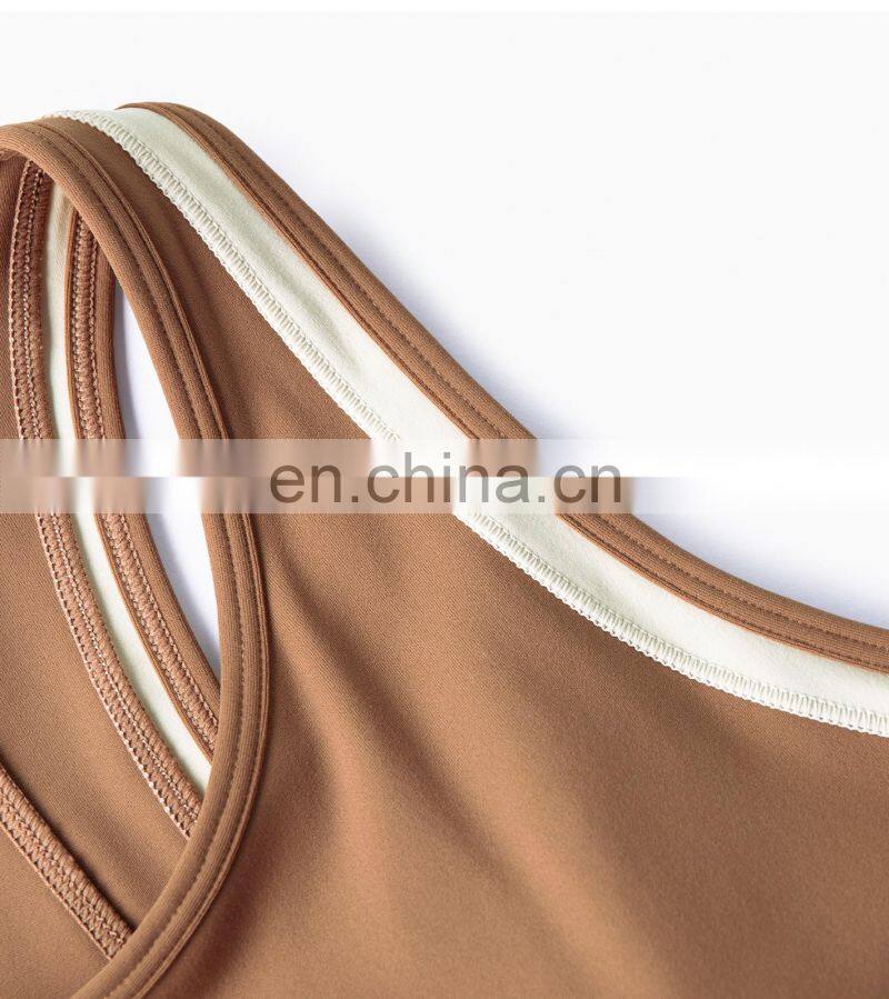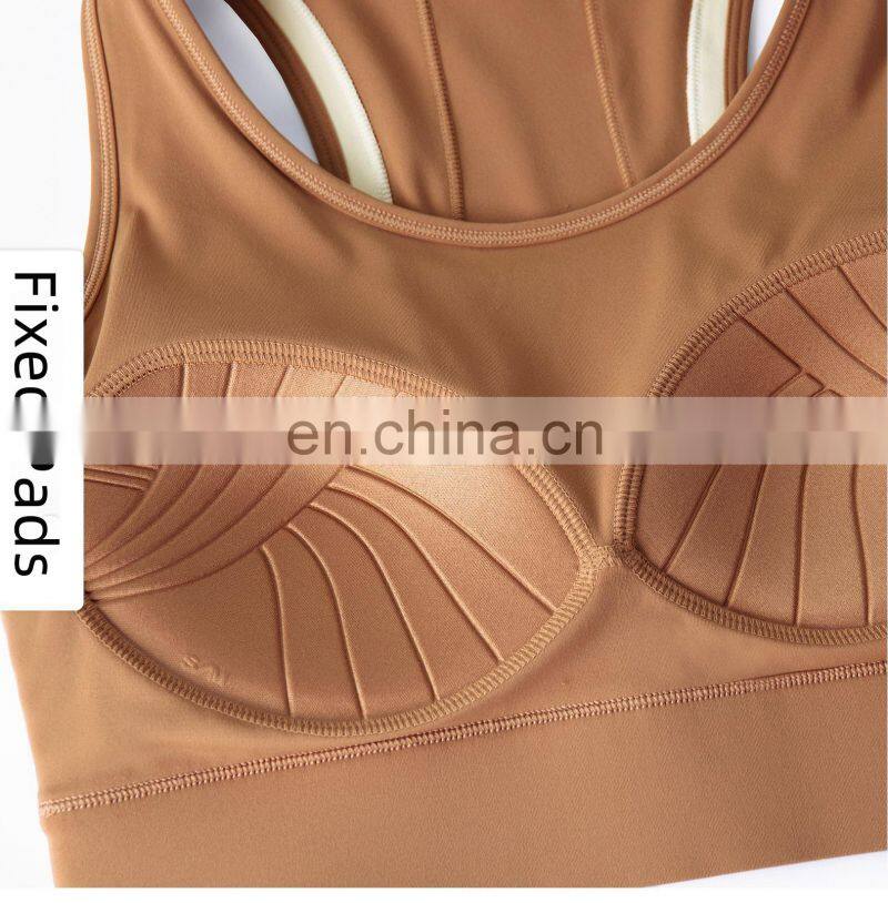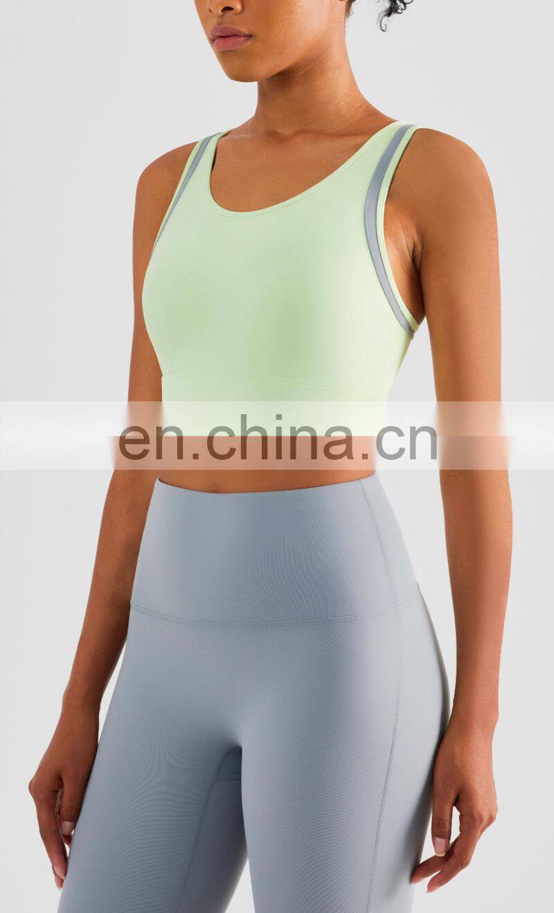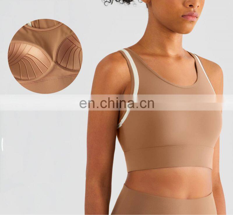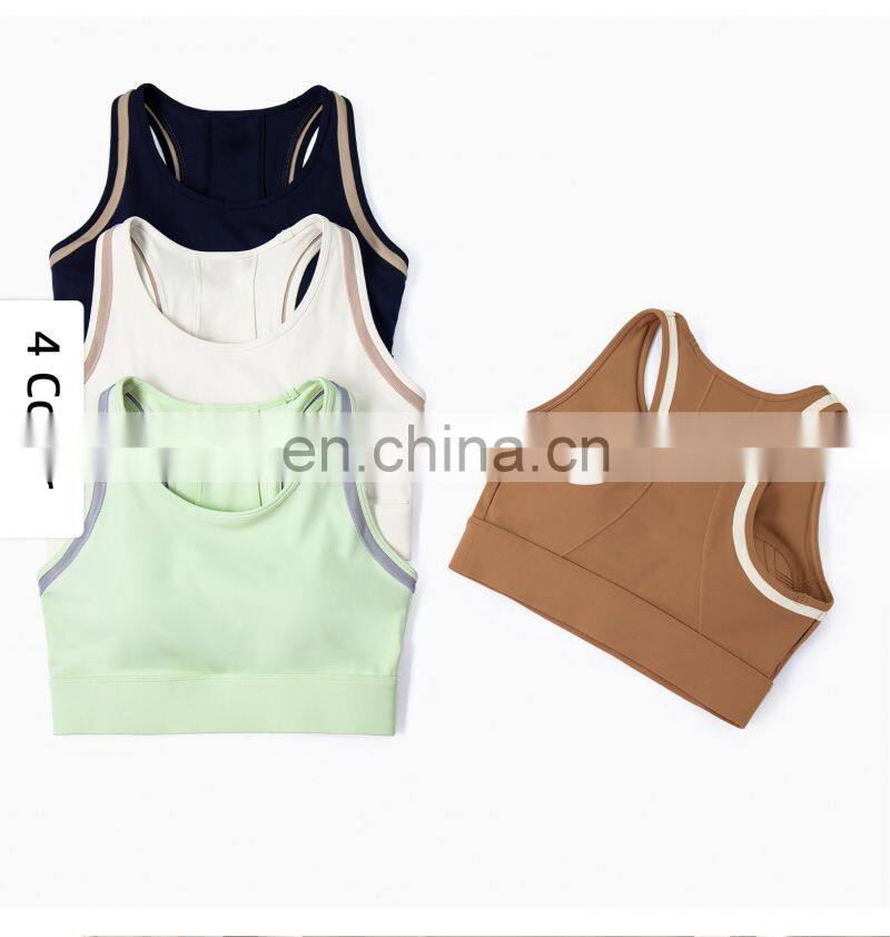Wholesale High Stretch Fitness Gym Bra Fixed Pads Sports Yoga Bra Top Color Blocking Shockproof Outdoor Training Wear Apparel