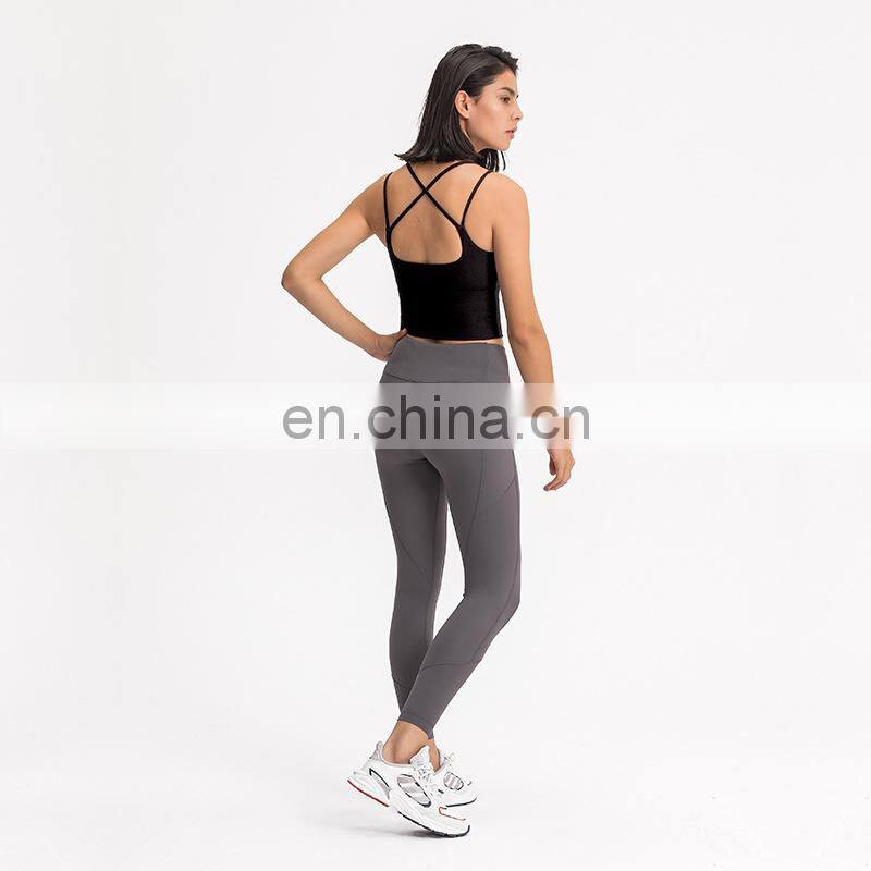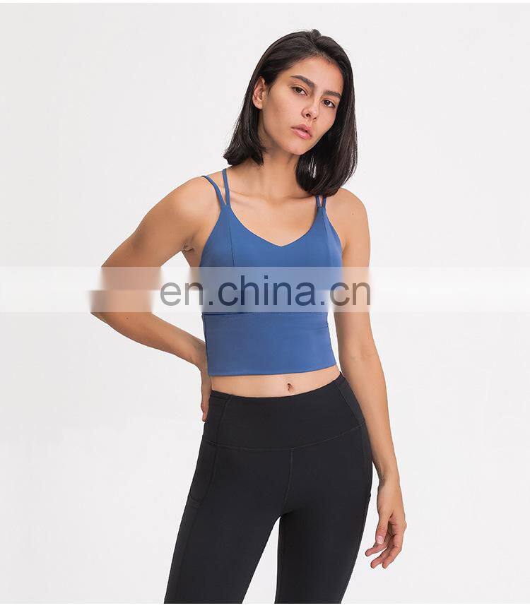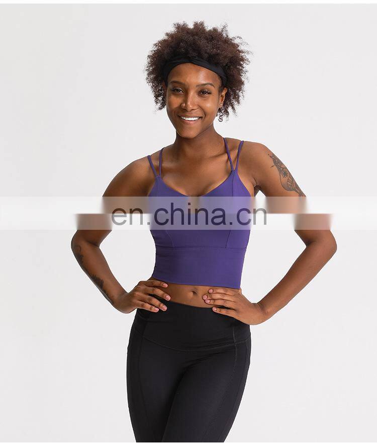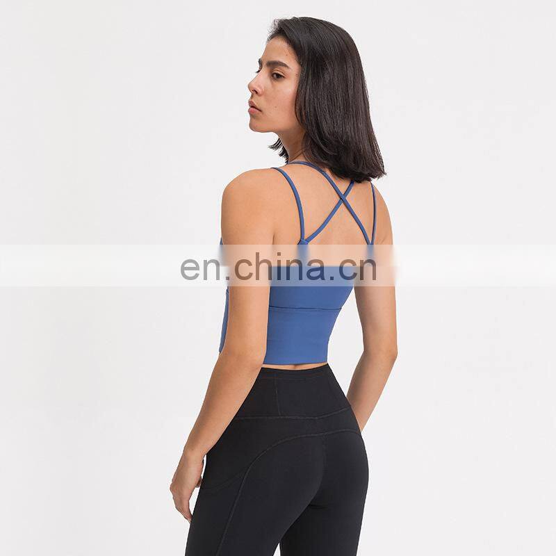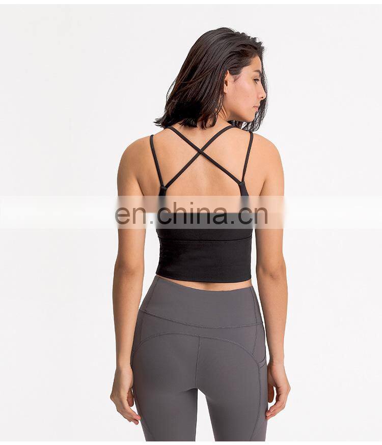 New Arrival Custom Logo Breathable Sexy Strap Yoga Crop Top Women Gym Sports Wear Bra Top Workout Fitness Nude Feeling Tank Top