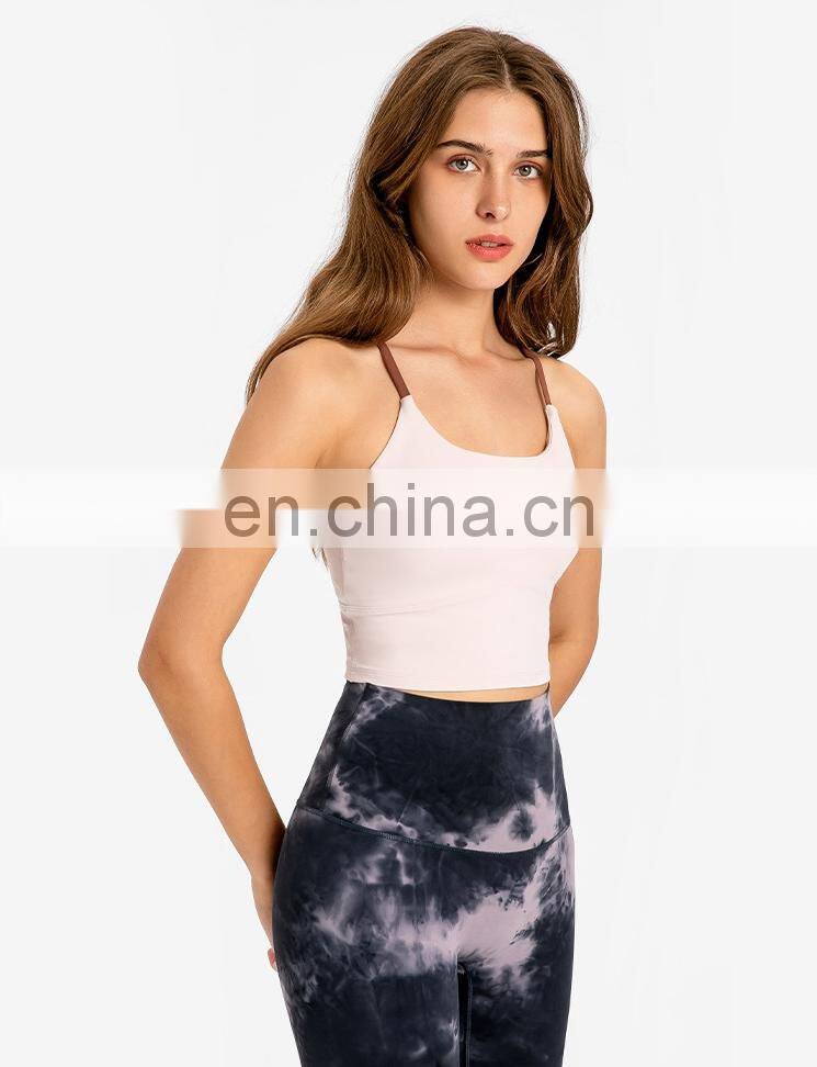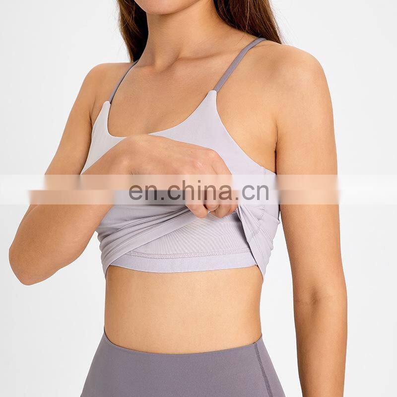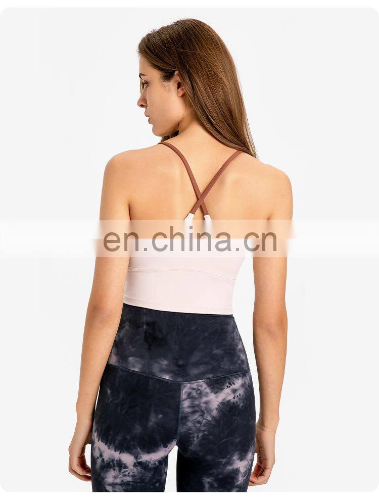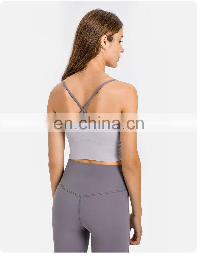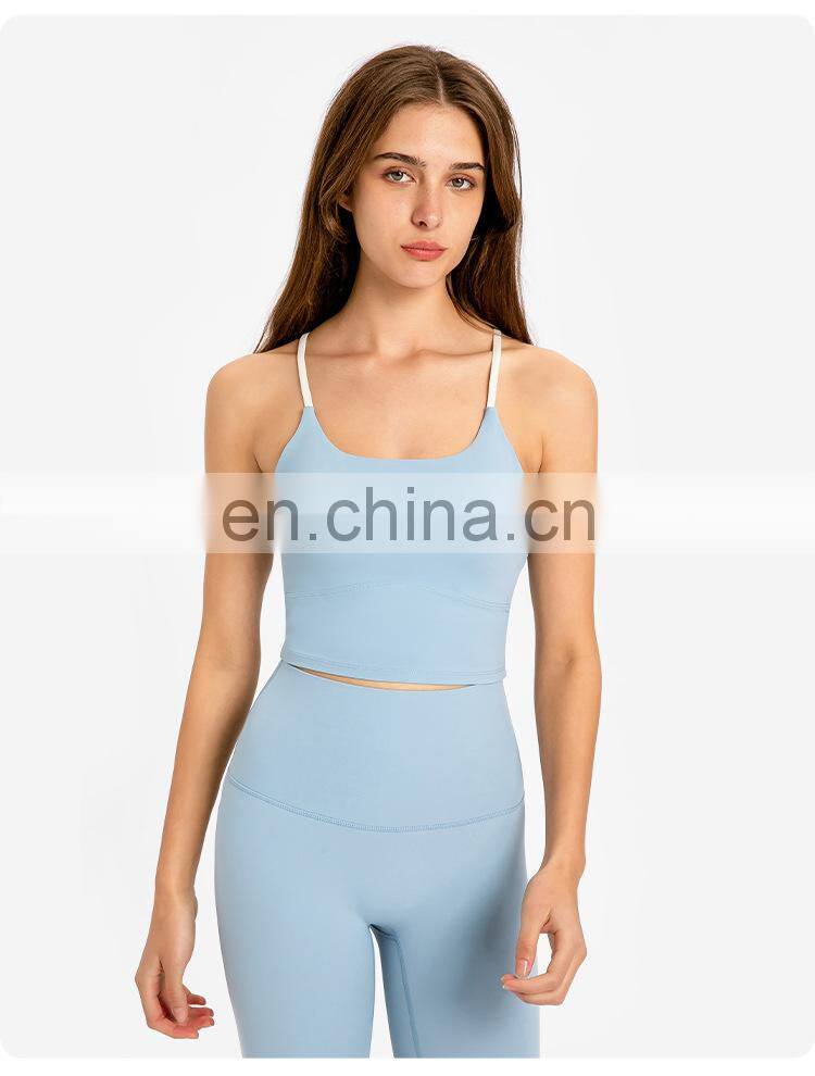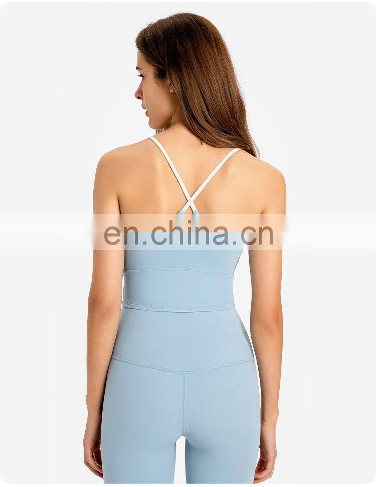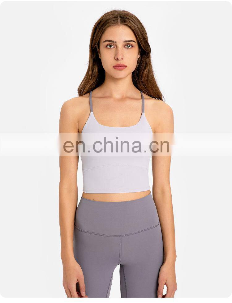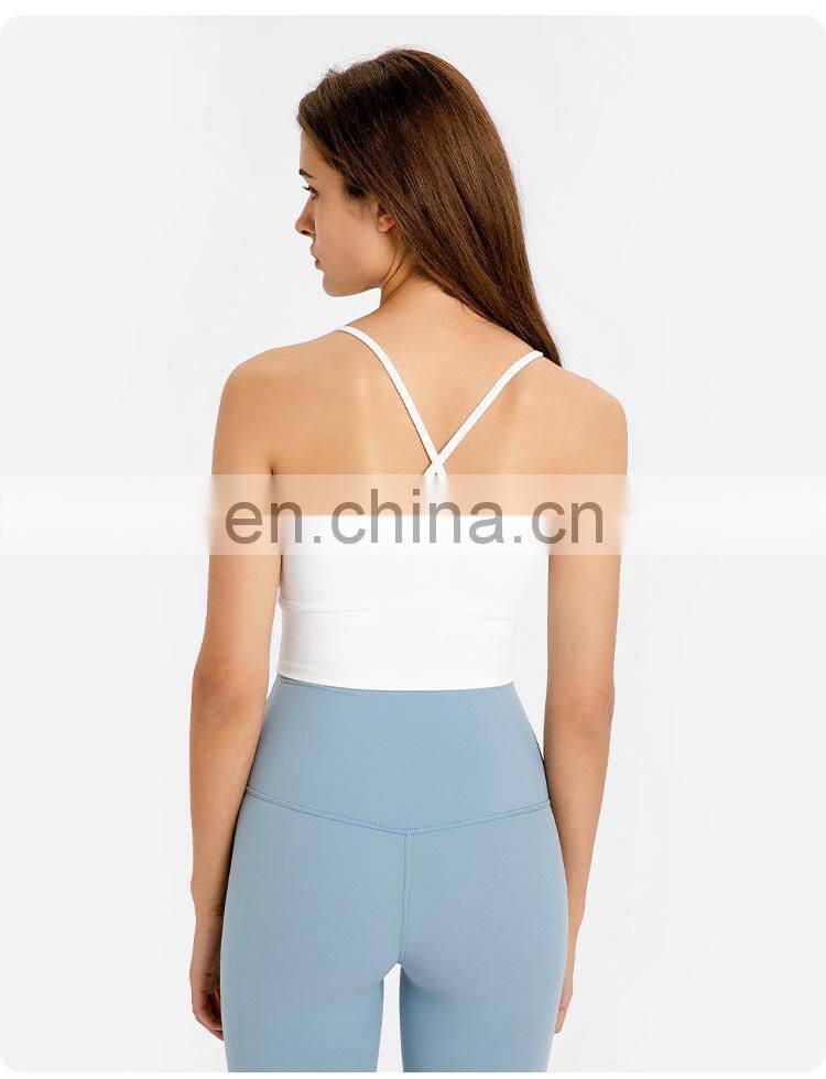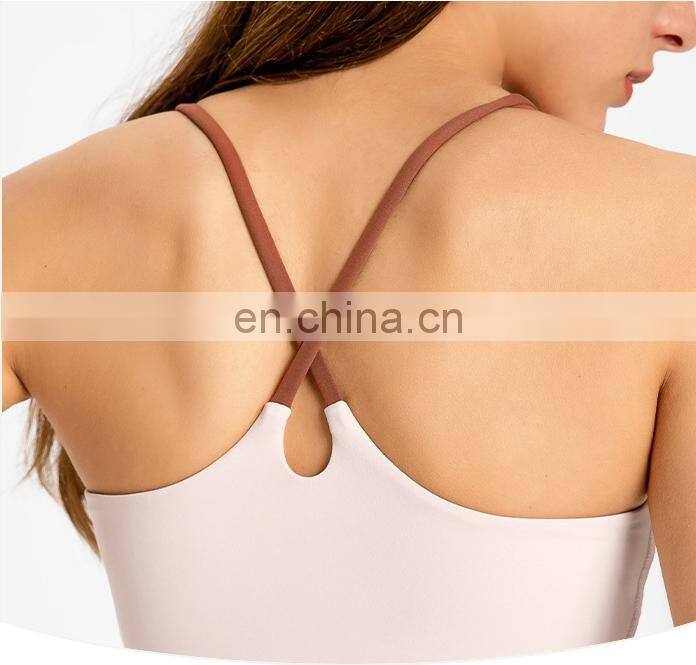 New Arrival Custom Logo Breathable Sexy Strap Yoga Crop Top Women Gym Sports Wear Bra Top Workout Fitness Nude Feeling Tank Top