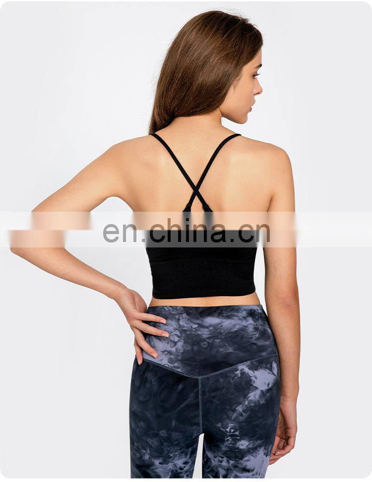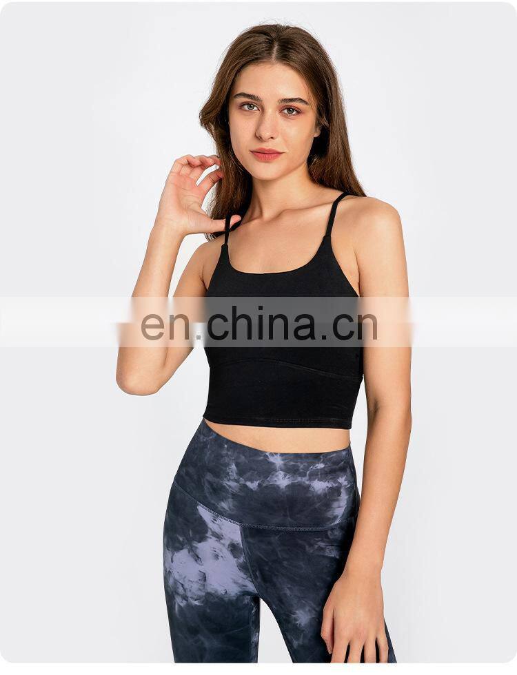 Wholesale Solid Color Women Workout Fitness Clothing Custom Logo Sexy Long Line Women Yoga Tops Sports Bra Cross Back Yoga Tanks
