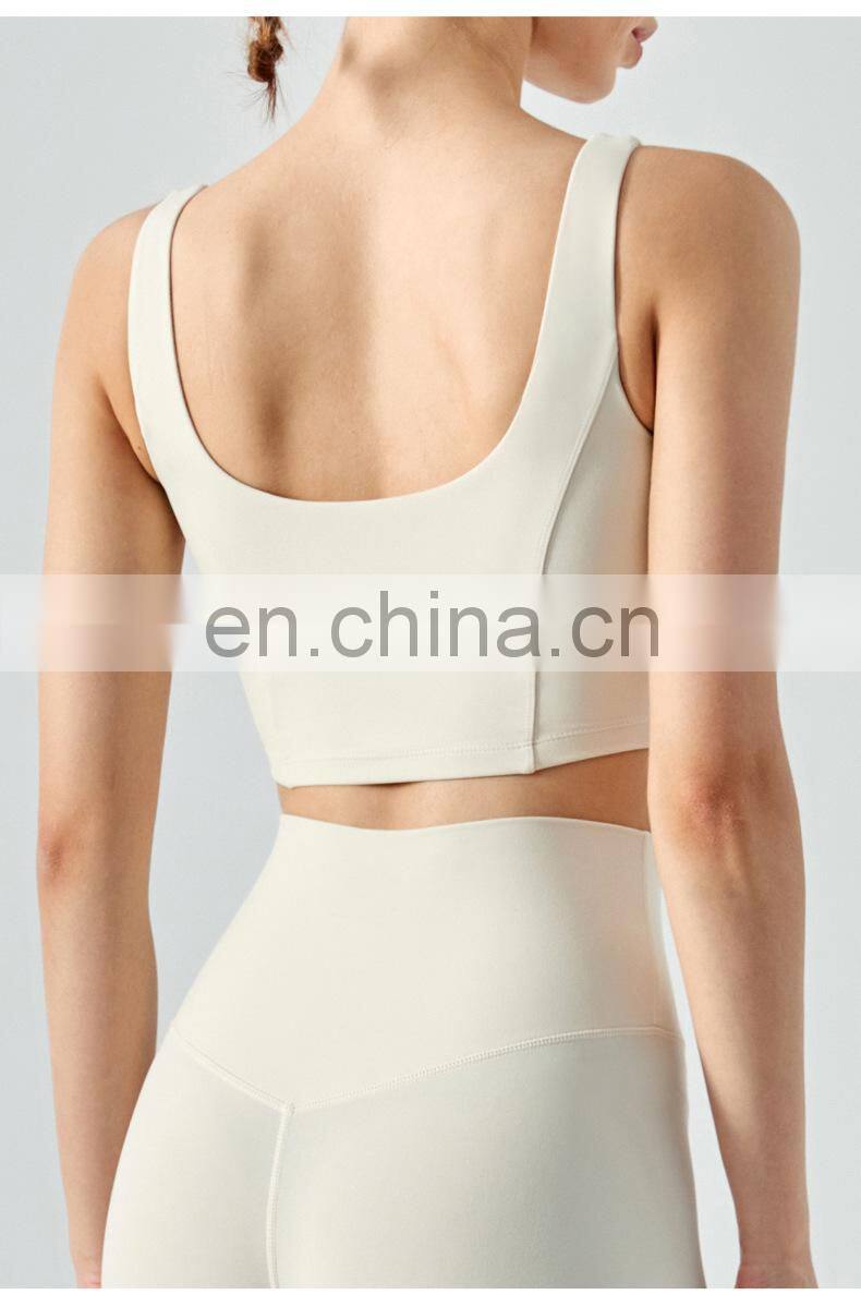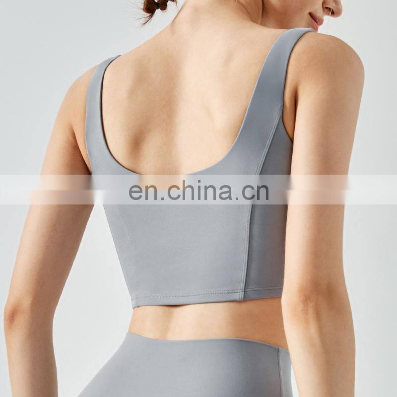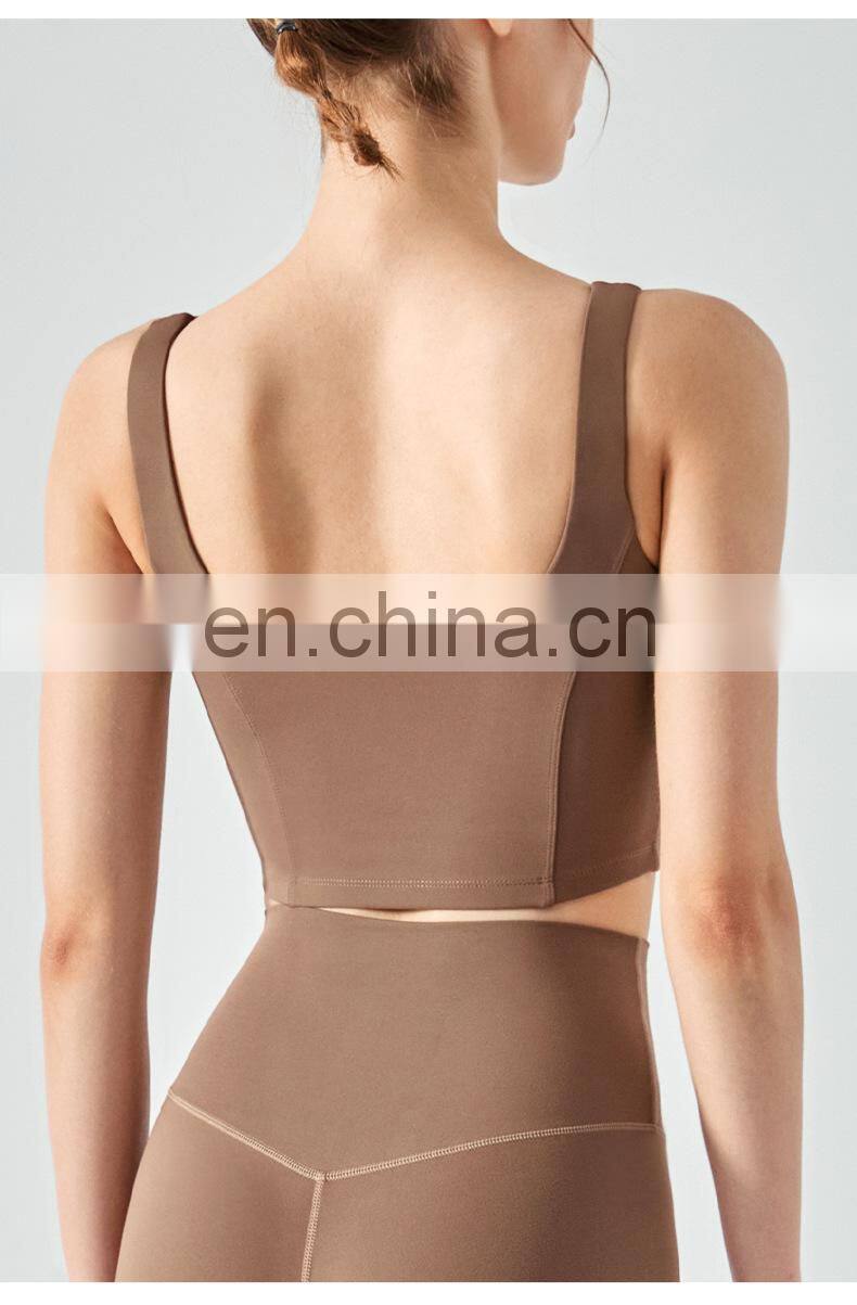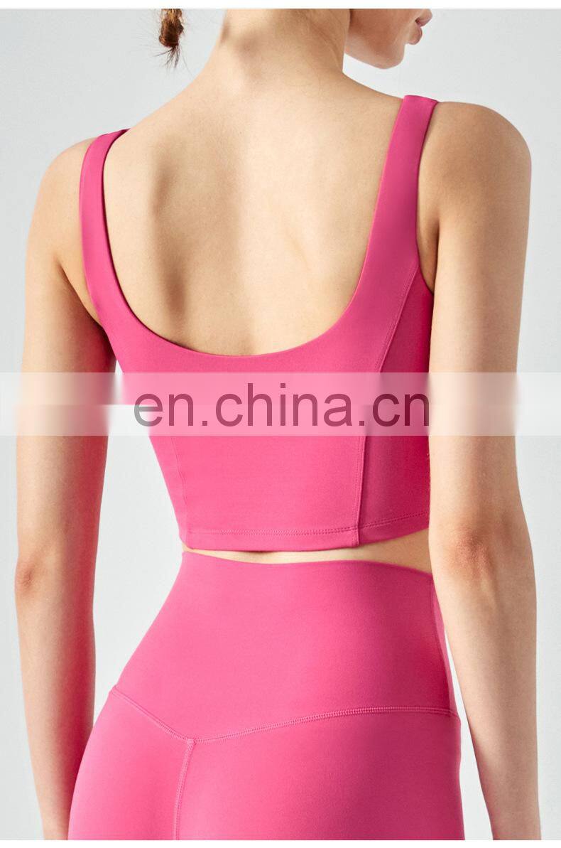 New Arrival Custom Logo Breathable Sexy Strap Yoga Crop Top Women Gym Sports Wear Bra Top Workout Fitness Nude Feeling Tank Top
