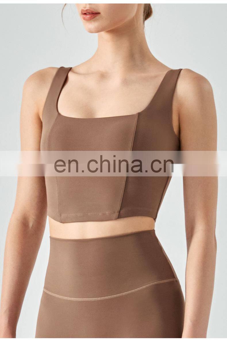 Solid Customized Fashion Double Shoulder Strap Yoga Bra Nude Feeling Women Gym Fitness Bra Top Physical Training Sportswear Bra