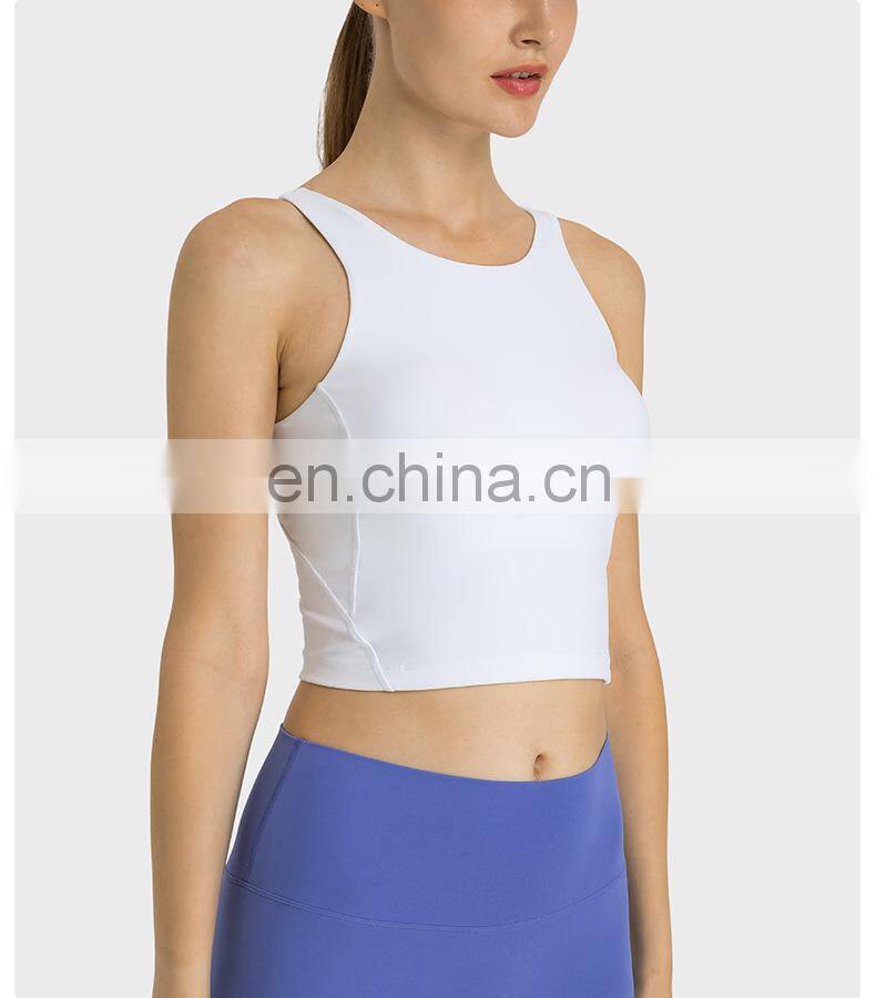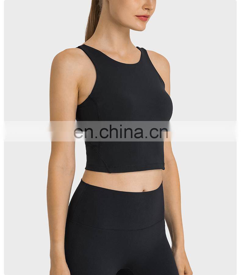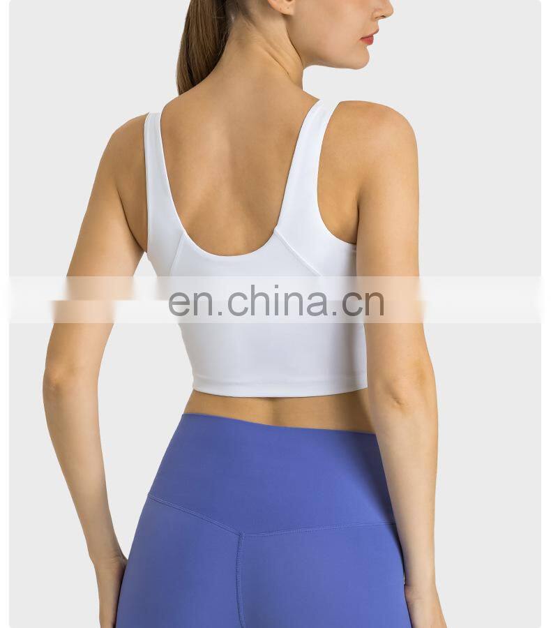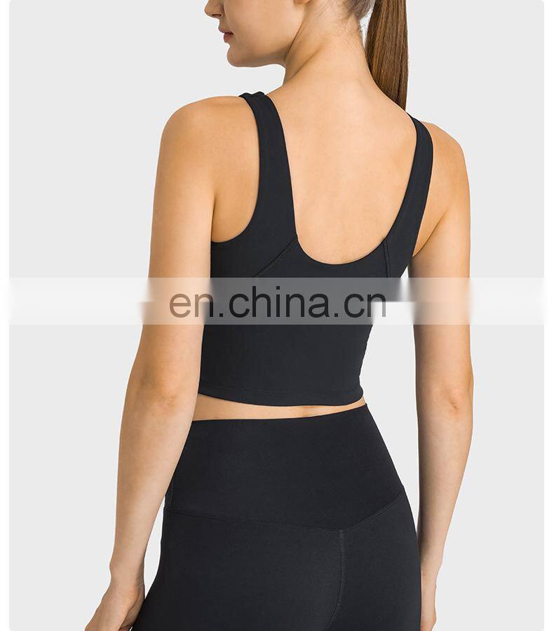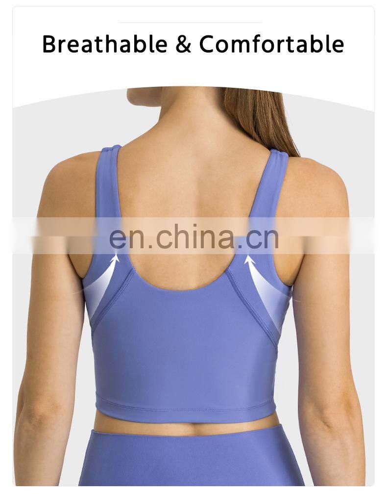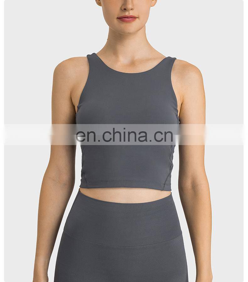 Wholesale Solid Color Women Workout Fitness Clothing Custom Logo Sexy Long Line Women Yoga Tops Sports Bra Cross Back Yoga Tanks