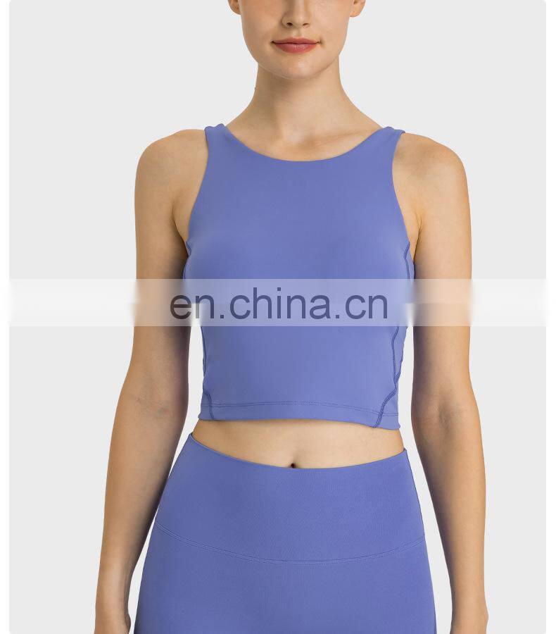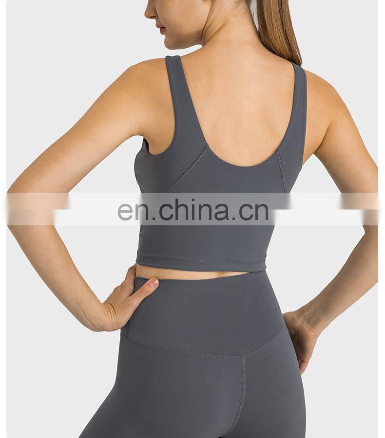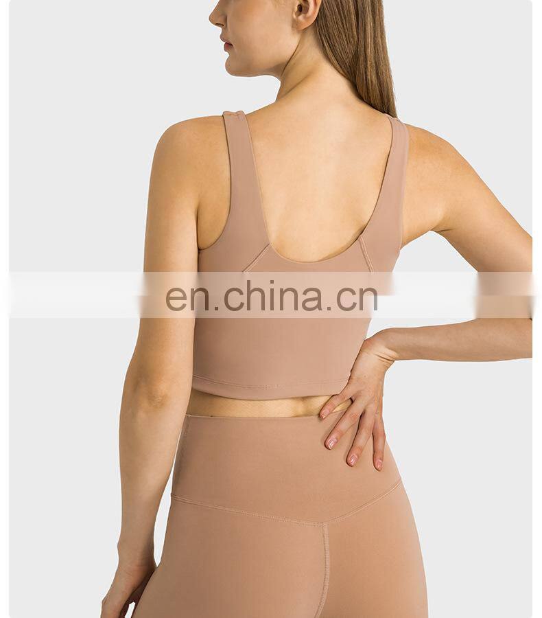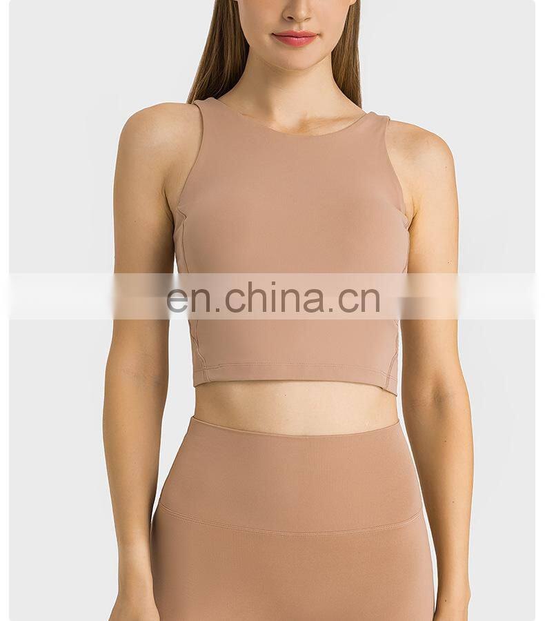 New Arrival Custom Logo Breathable Sexy Strap Yoga Crop Top Women Gym Sports Wear Bra Top Workout Fitness Nude Feeling Tank Top