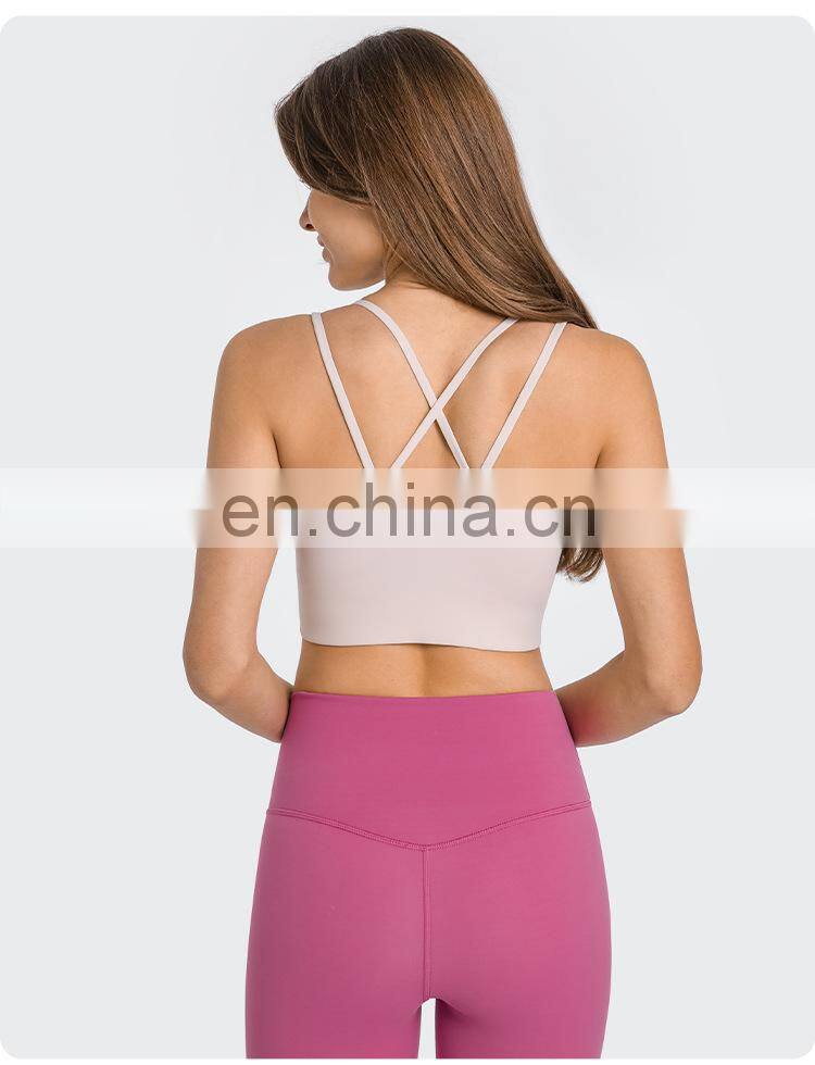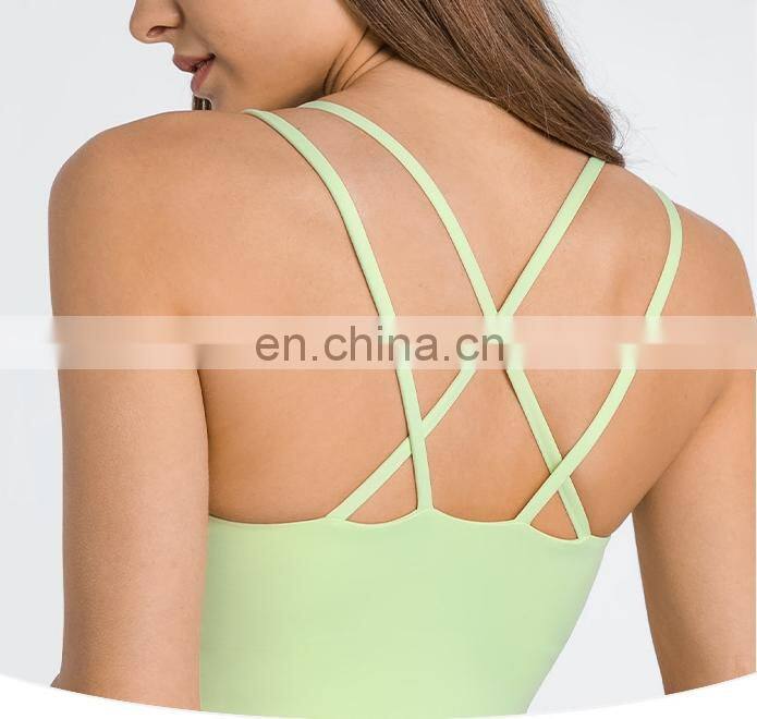 New Arrival Custom Logo Breathable Sexy Strap Yoga Crop Top Women Gym Sports Wear Bra Top Workout Fitness Nude Feeling Tank Top