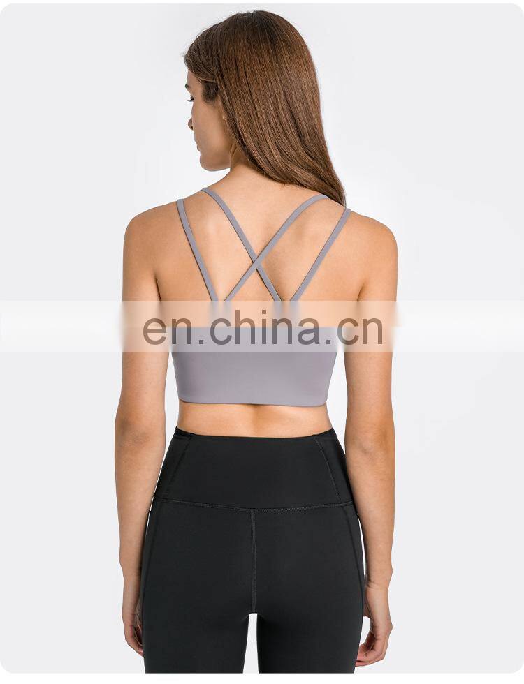 Home > Products > Sports Bra > New Arrival Custom Logo Breathable Sexy Strap Yoga Crop Top Women Gym Sports Wear Bra Top Workout Fitness Nude Feeling Tank Top