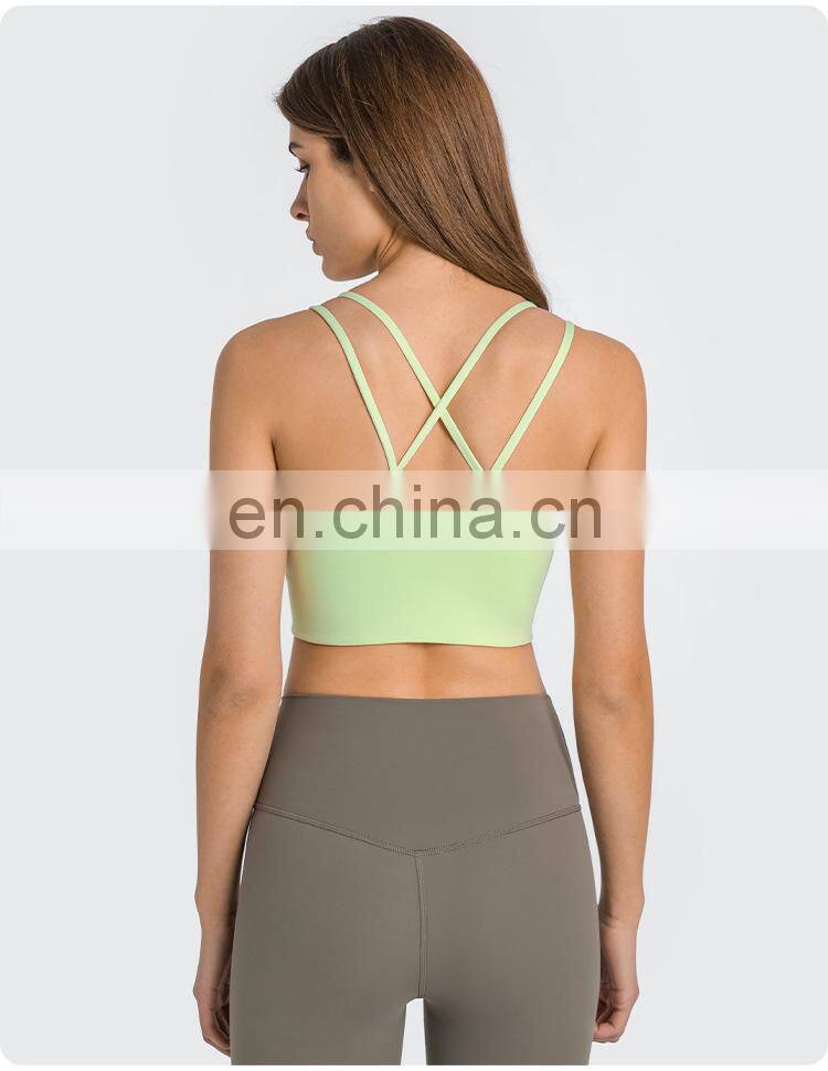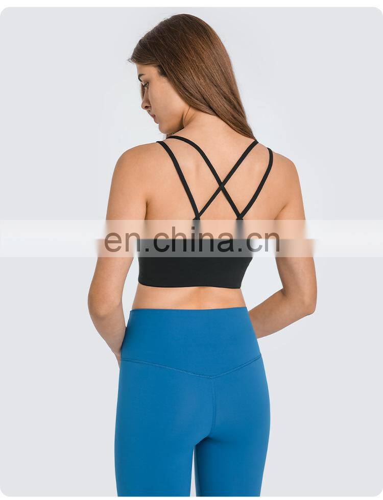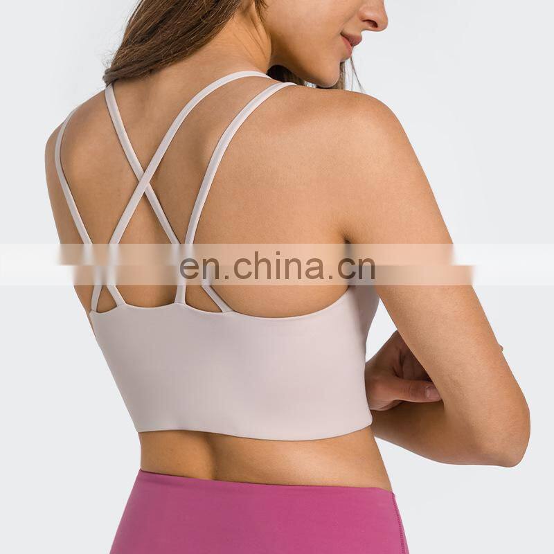 New Arrival Custom Logo Good Quality Sexy Cross Back Straps Sports Bra Women Workout Yoga Fitness Wear Bra Top Clothes