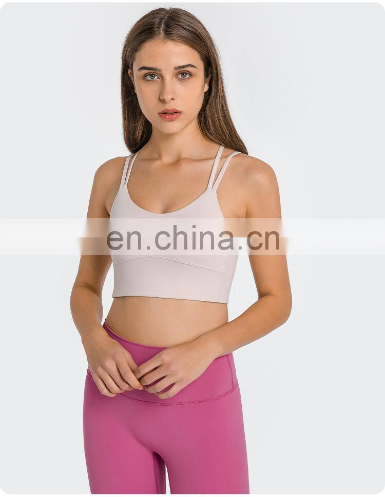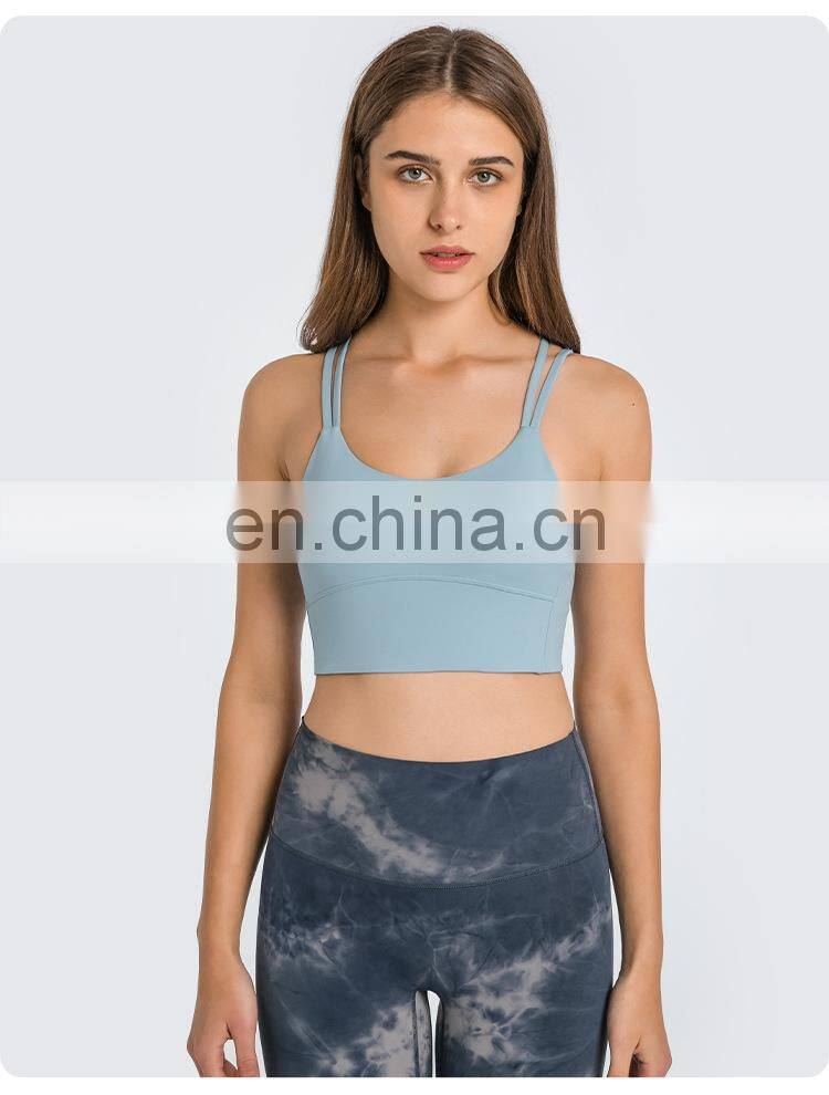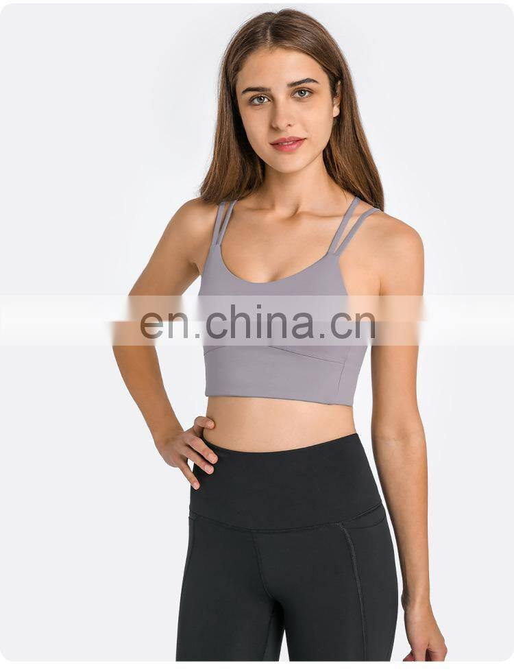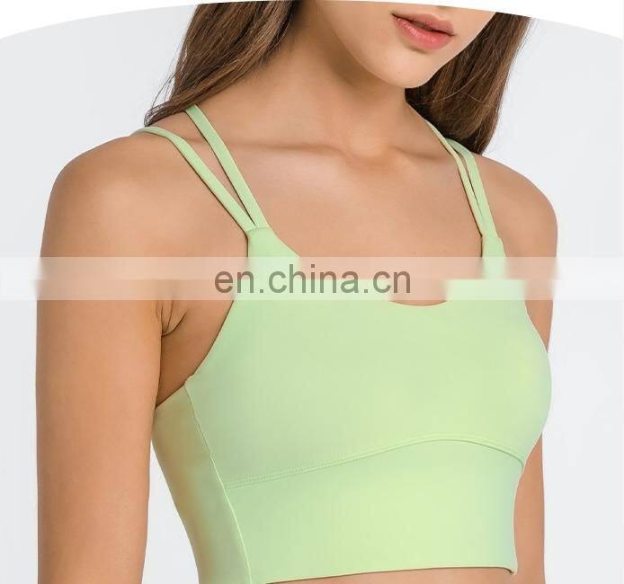 Custom Sexy Straps Beauty Back Sports Fitness Bra Women Long Line Double Straps Shockproof Gym Yoga Wear Apparel