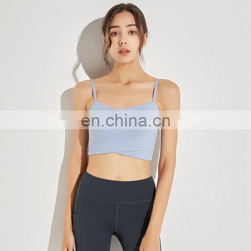 Wholesale Solid Color Women Workout Fitness Clothing Custom Logo Sexy Long Line Women Yoga Tops Sports Bra Cross Back Yoga Tanks