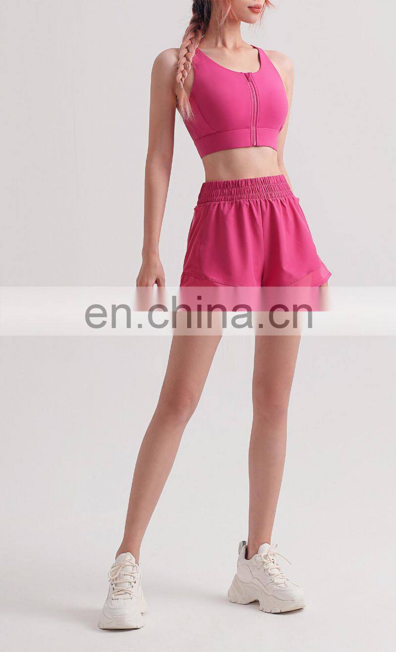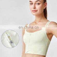 Low MOQ Requirement Sexy Front Zipper U Back Gym Wear Workout Fitness Sports Women Yoga Bra Top Inset Bra