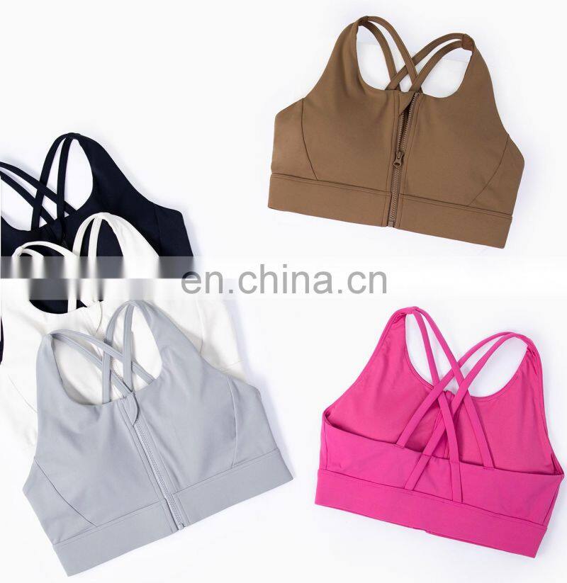 Tik Tok New Style Front Zipper Shockproof Sports Yoga Bra Sexy Strap Cross Back Gym Fitness Wear Women Outdoor Training Clothes