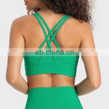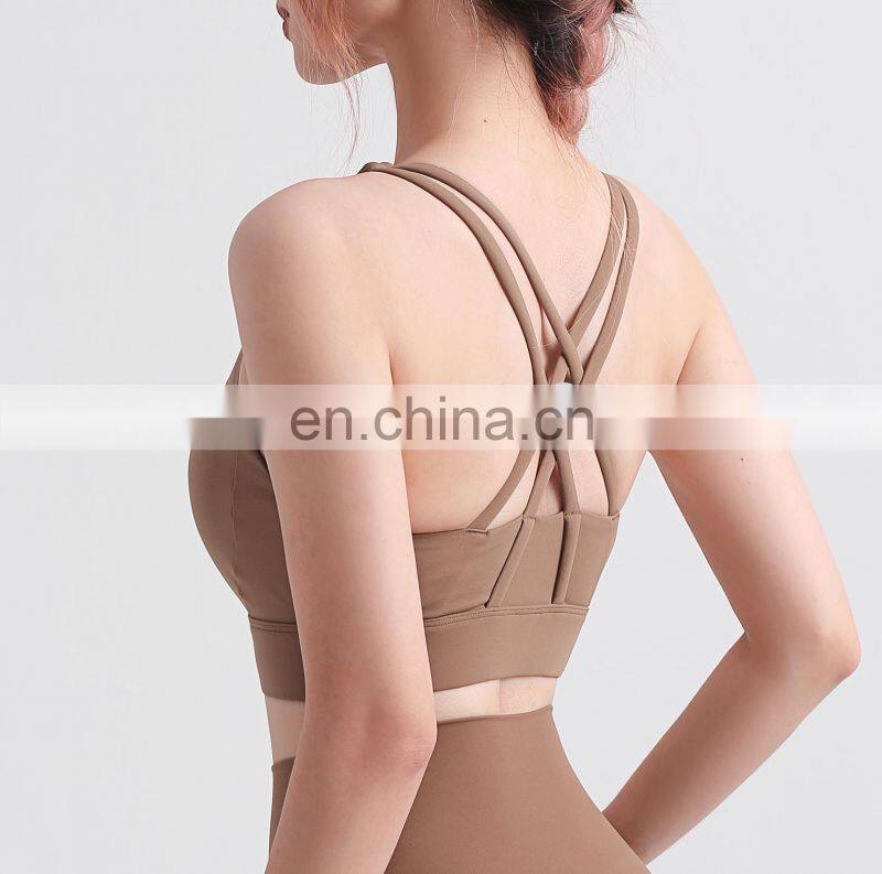 Solid Customized Fashion Double Shoulder Strap Yoga Bra Nude Feeling Women Gym Fitness Bra Top Physical Training Sportswear Bra
