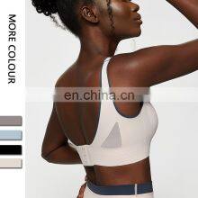 MOQ 1 Custom Logo Back Hook Shockproof Sports Yoga Bra Adjustable Hollow Out Training Wear Fitness Running Bra Top