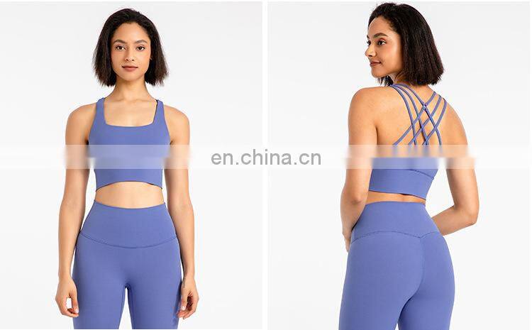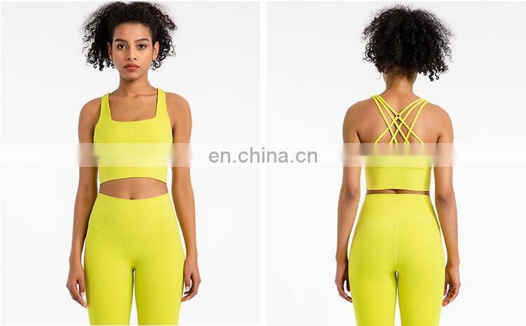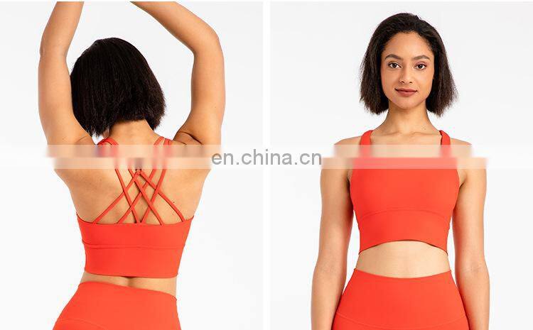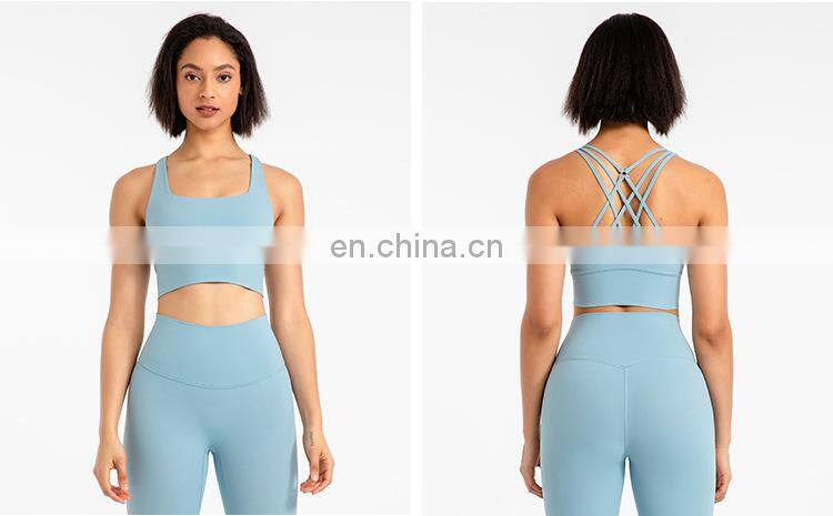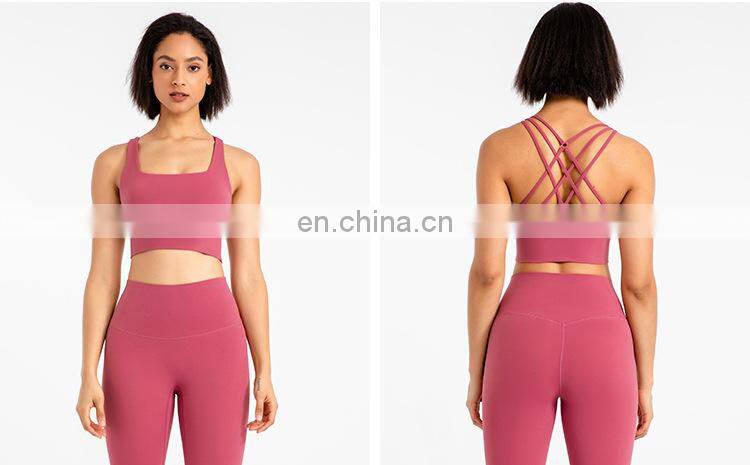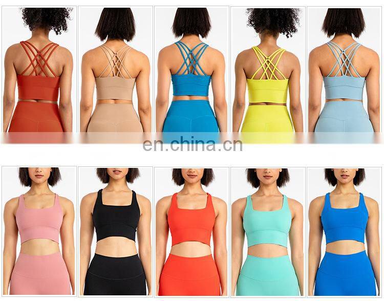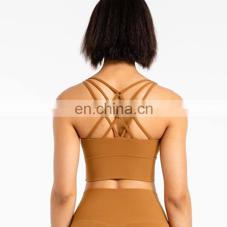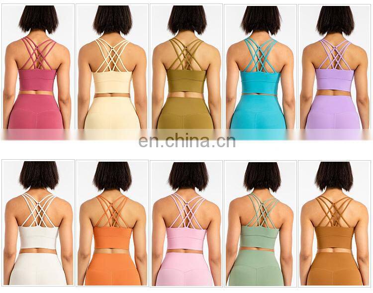Solid Customized Fashion Double Shoulder Strap Yoga Bra Nude Feeling Women Gym Fitness Bra Top Physical Training Sportswear Bra