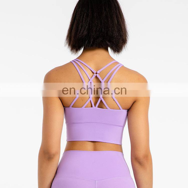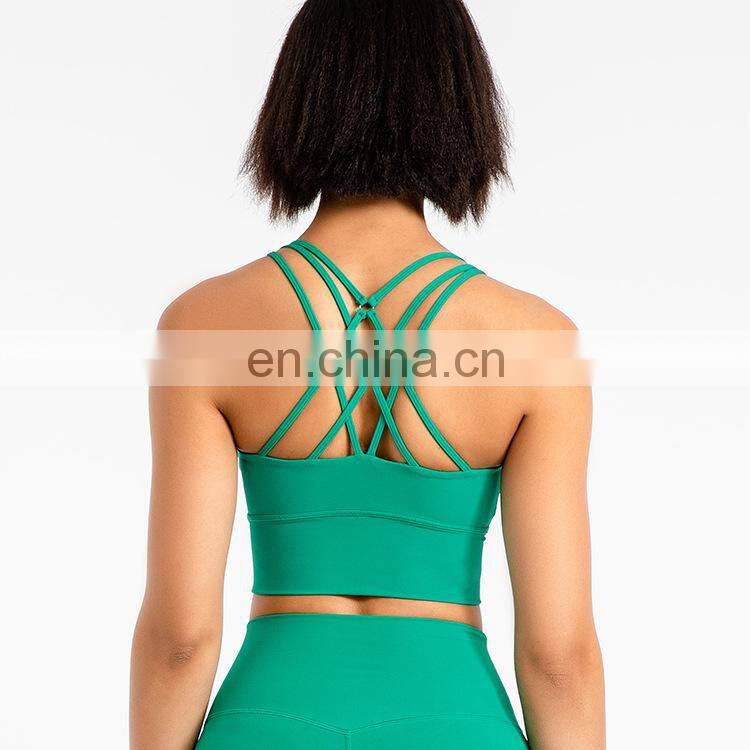 New Hot Selling Woman Active Wear Sexy Straps Yoga Sport Bra Top Running Training Girl Fitness Yoga Bra Gym Sports Clothing