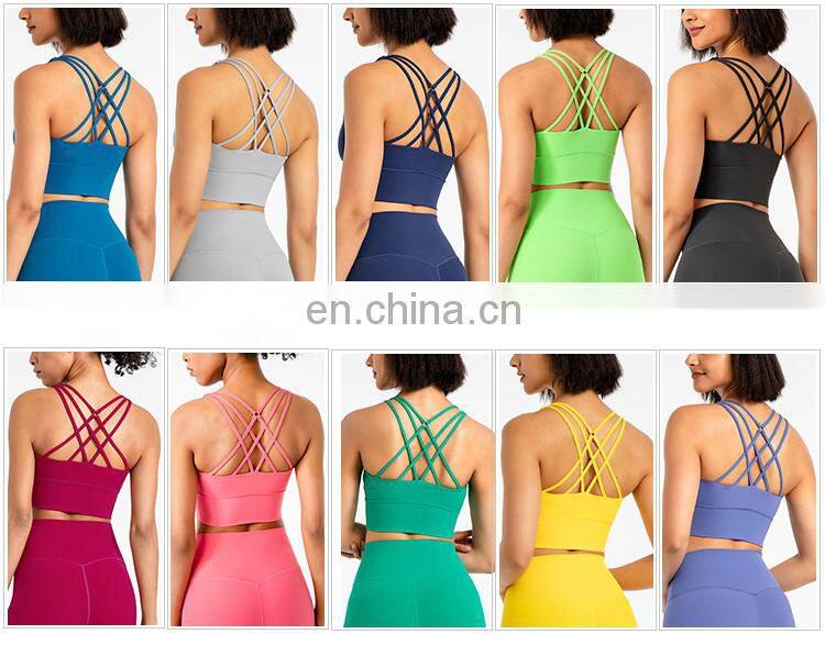 Home > Products > Sports Bra > New Hot Selling Woman Active Wear Sexy Straps Yoga Sport Bra Top Running Training Girl Fitness Yoga Bra Gym Sports Clothing