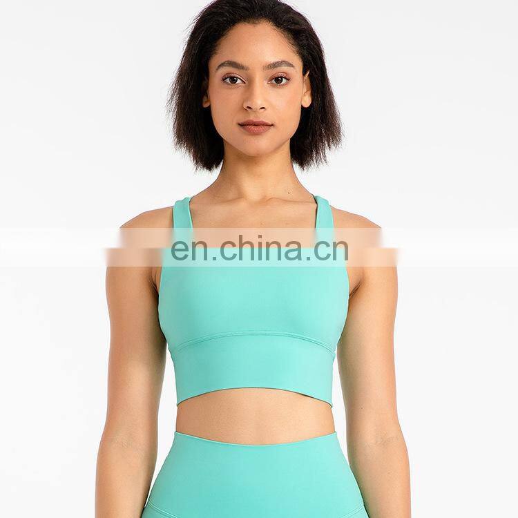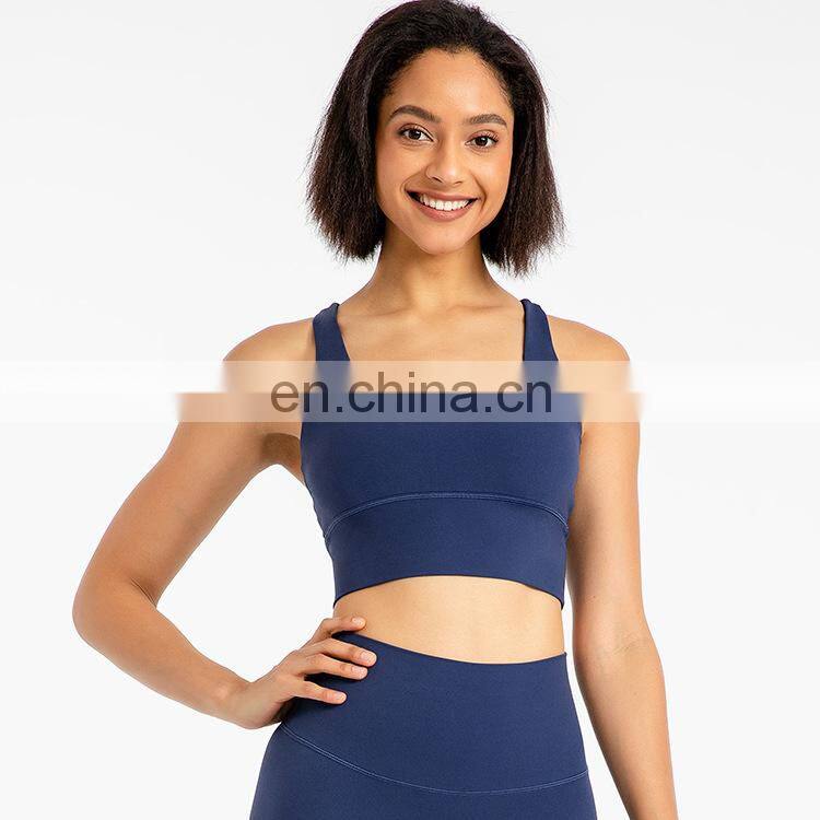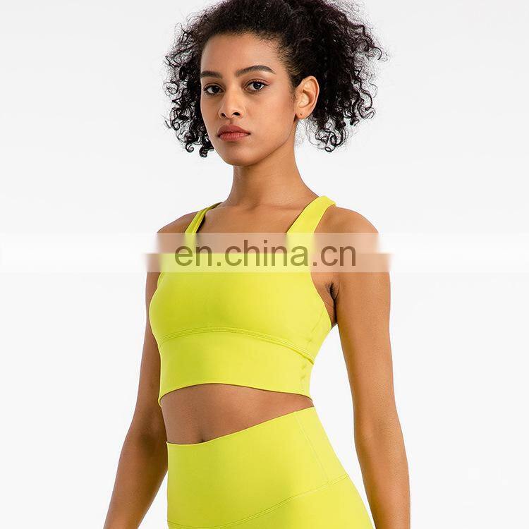 Wholesale Solid Color Women Workout Fitness Clothing Custom Logo Sexy Long Line Women Yoga Tops Sports Bra Cross Back Yoga Tanks