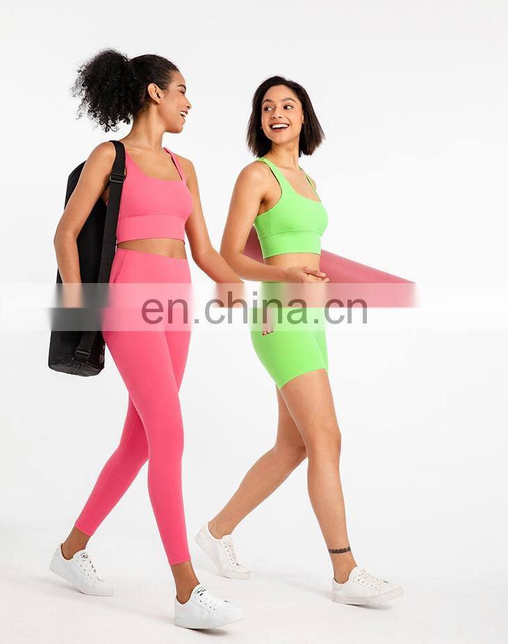 Wholesale Hot Ribbed Patchwork Square Neck Fixed Padded One Piece Adjustable Yoga Bra Top Women Gym Sports Fitness Wear