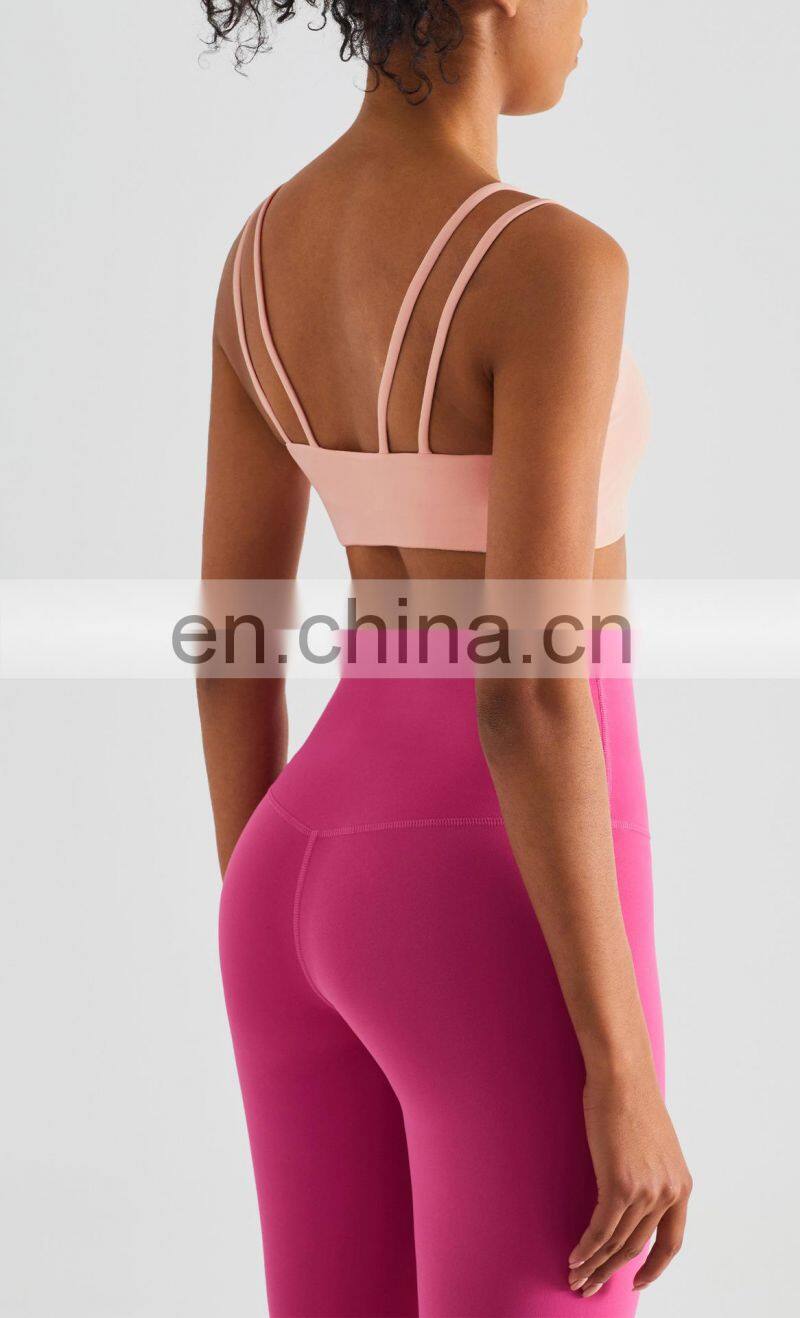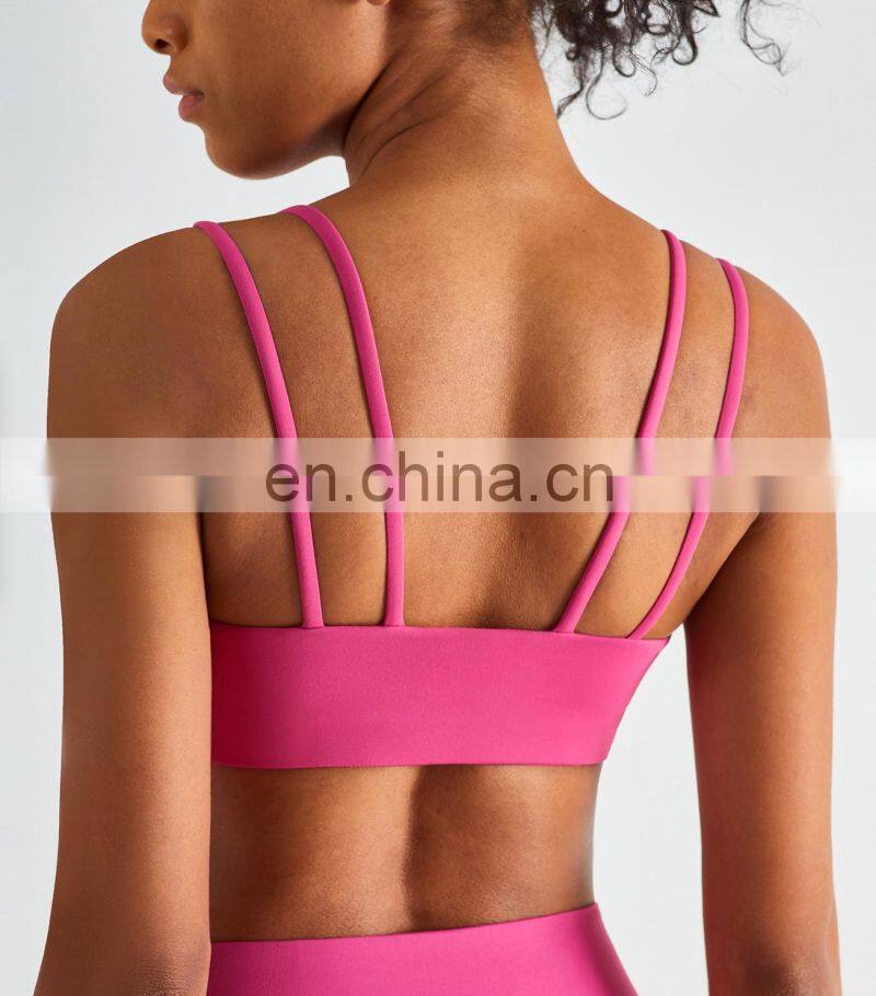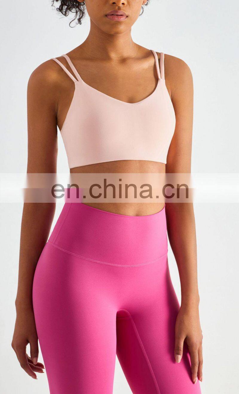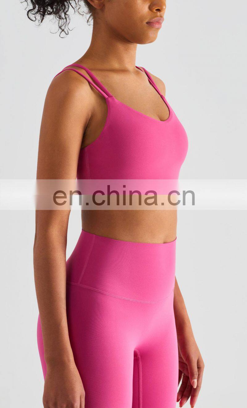 Solid Customized Fashion Double Shoulder Strap Yoga Bra Nude Feeling Women Gym Fitness Bra Top Physical Training Sportswear Bra