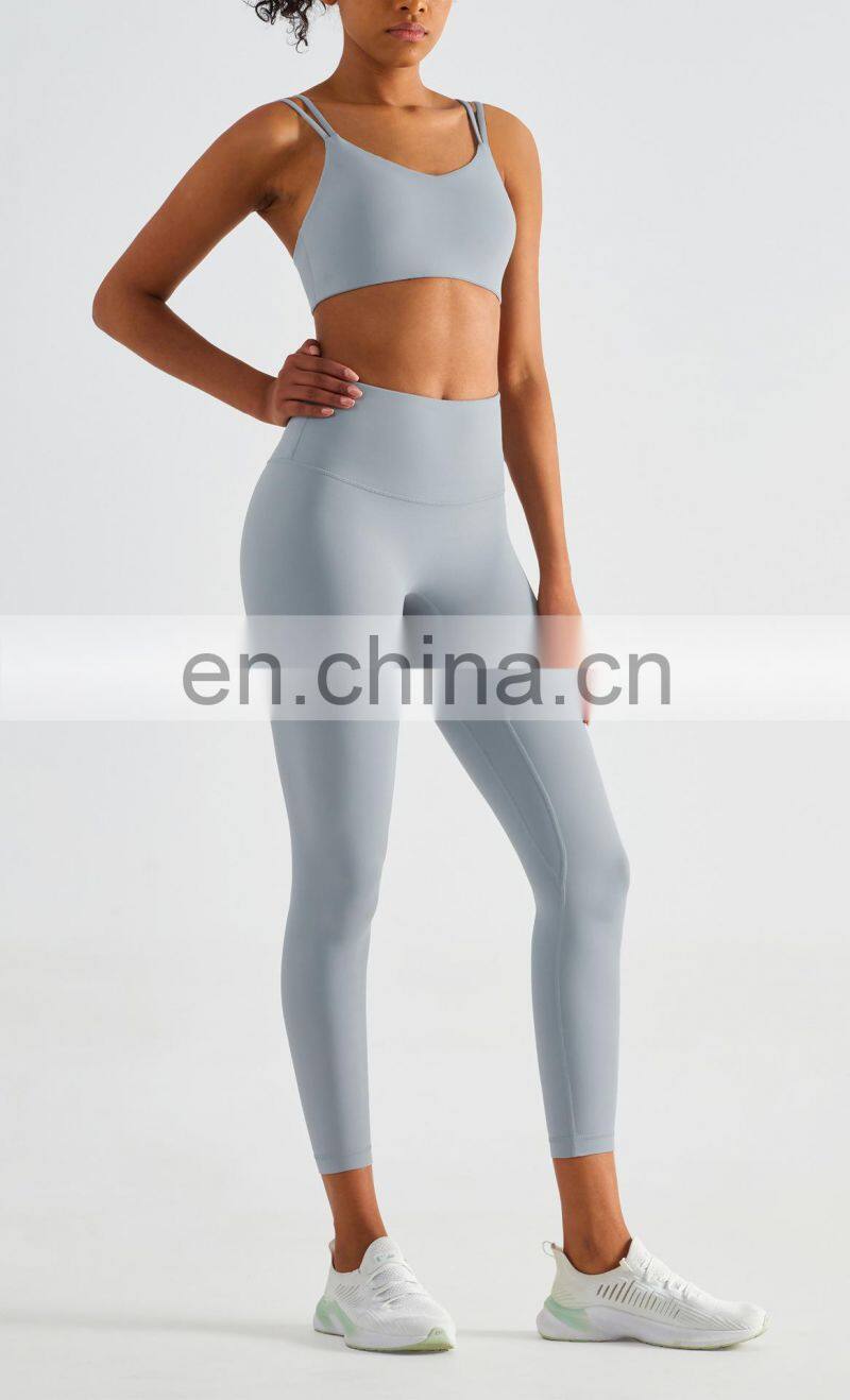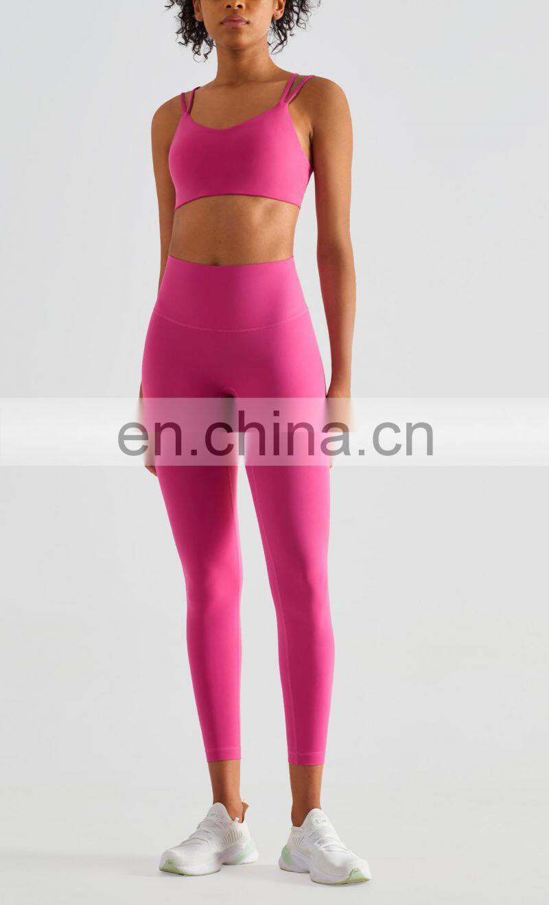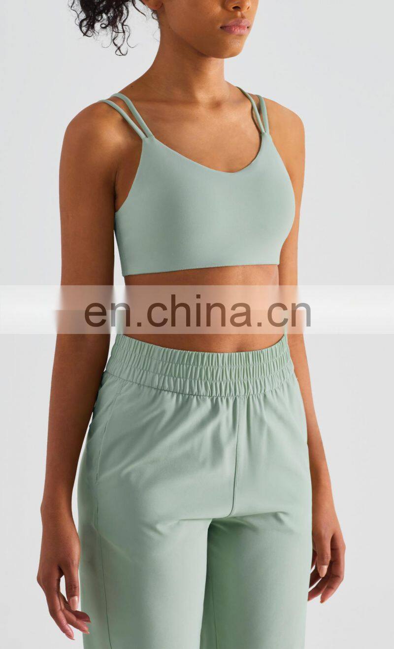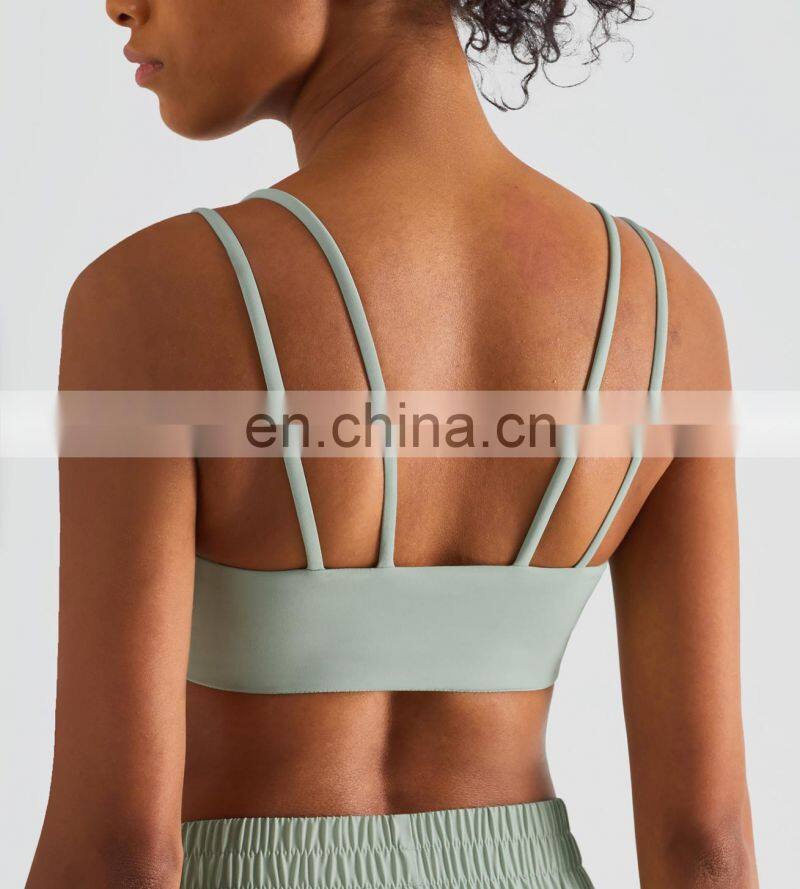 Solid Customized Fashion Double Shoulder Strap Yoga Bra Nude Feeling Women Gym Fitness Bra Top Physical Training Sportswear Bra