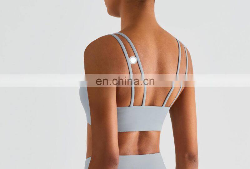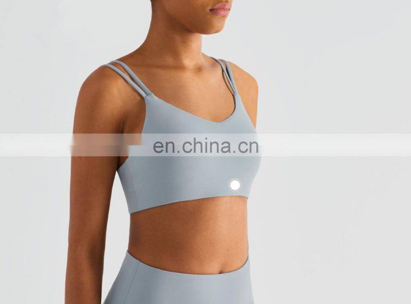 Home > Products > Sports Bra > Solid Customized Fashion Double Shoulder Strap Yoga Bra Nude Feeling Women Gym Fitness Bra Top Physical Training Sportswear Bra