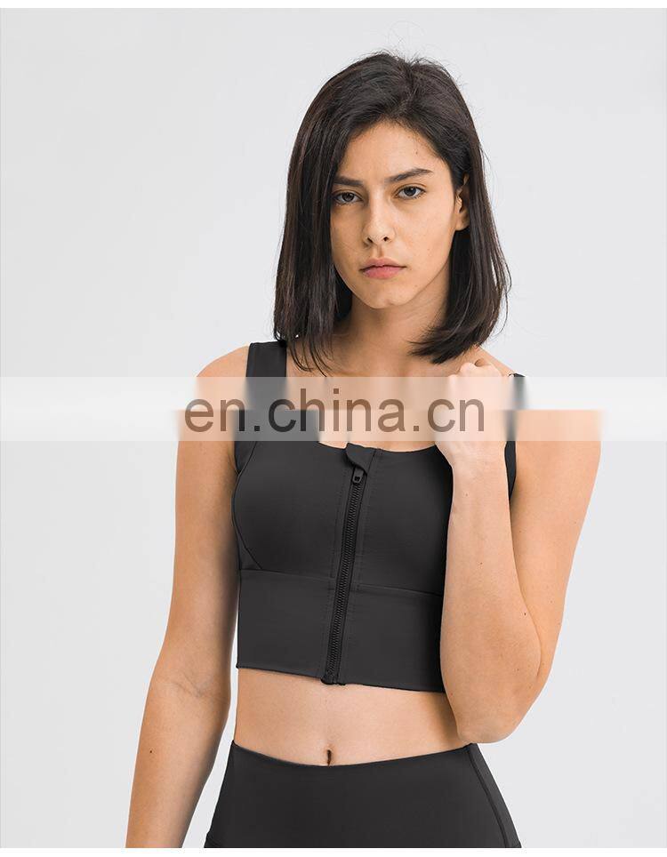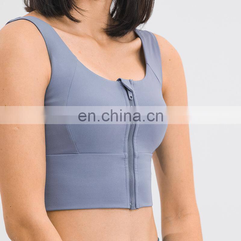 High Quality Sexy Zip Front Shockproof Gym Yoga Bra Longline High Impact Fitness Sports Wear Workout Training Bra Top For Women