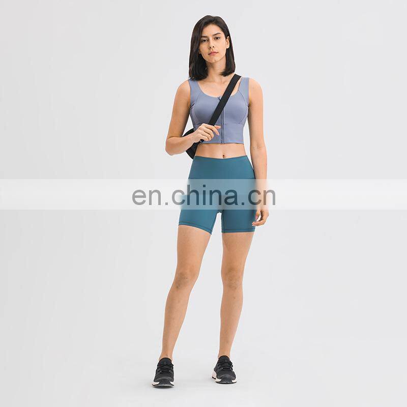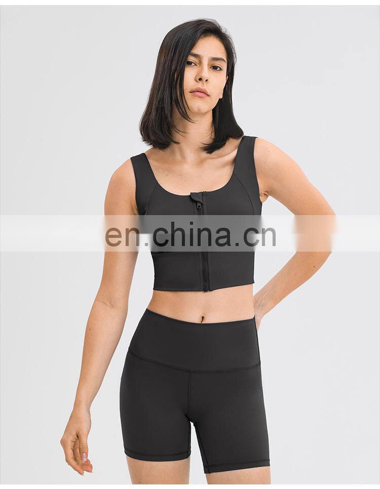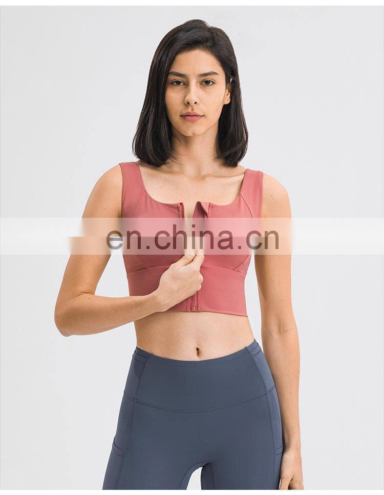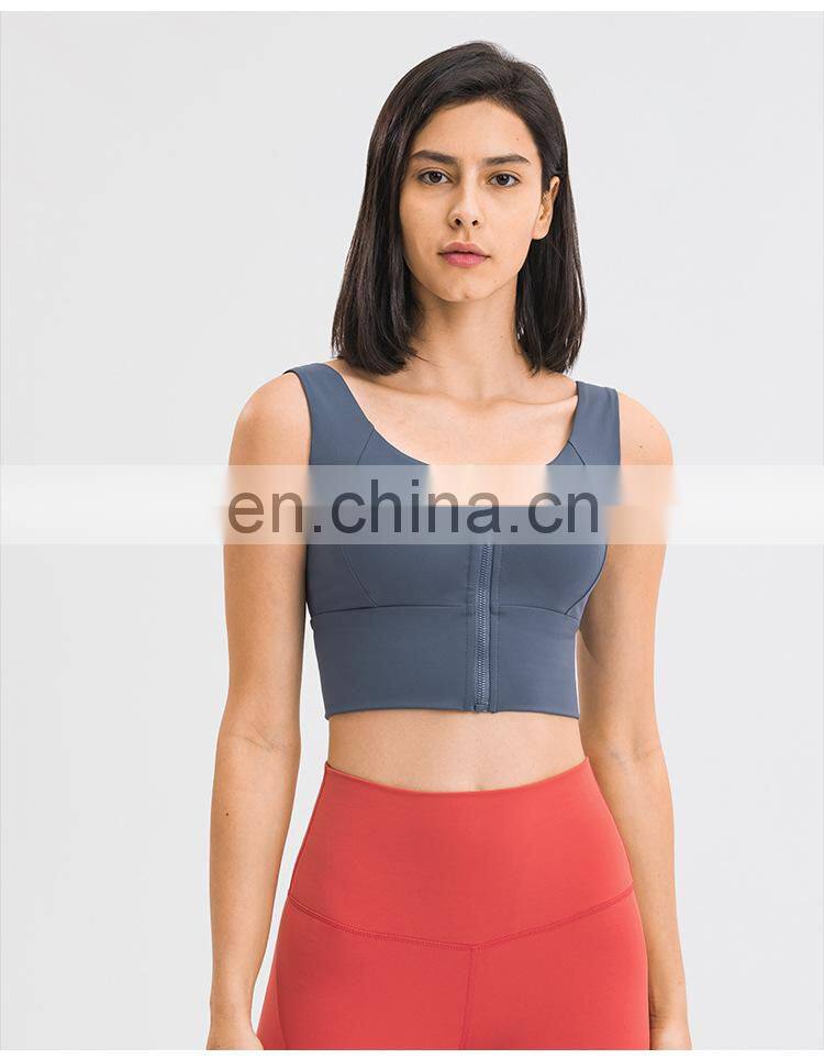 Low MOQ Requirement Sexy Front Zipper U Back Gym Wear Workout Fitness Sports Women Yoga Bra Top Inset Bra