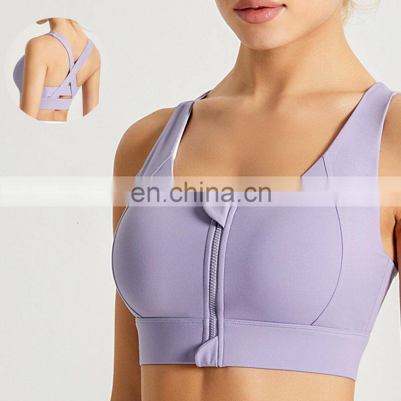 High Quality Sexy Zip Front Shockproof Gym Yoga Bra Longline High Impact Fitness Sports Wear Workout Training Bra Top For Women