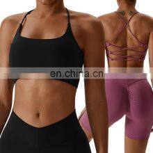 Running Sports Underwear Clothes Women Hot Sexy Cross Back Straps Bra Custom Workout Top Backless Sports Bra For Women Fitness