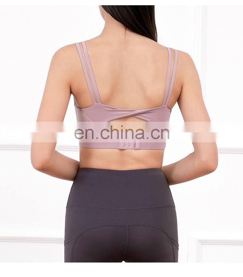 Wholesale Quick Dry Breathable High Quality Ladies Sexy Workout Top Custom Gym Fitness Yoga Bra Cross Back Sports Bra For Women