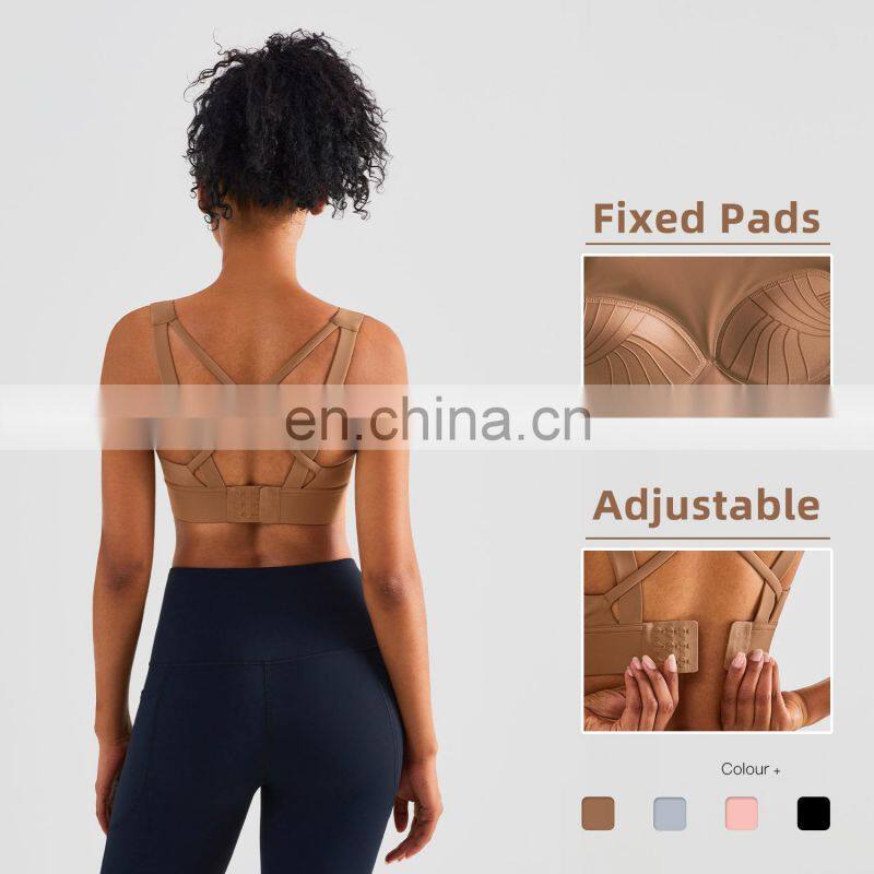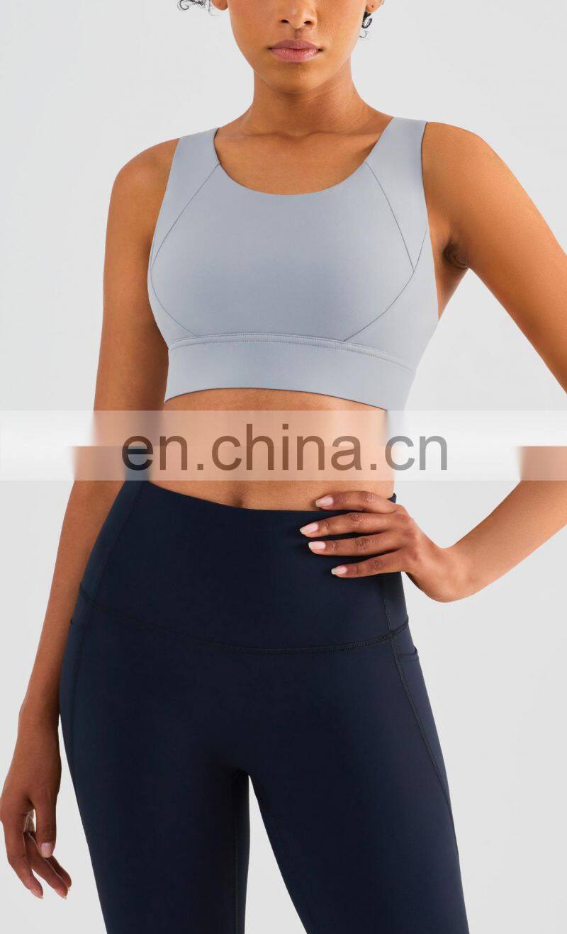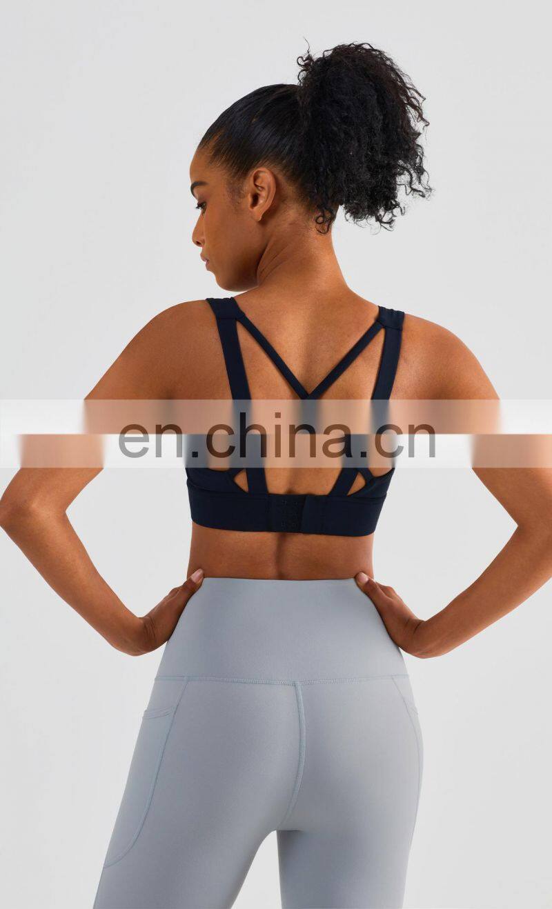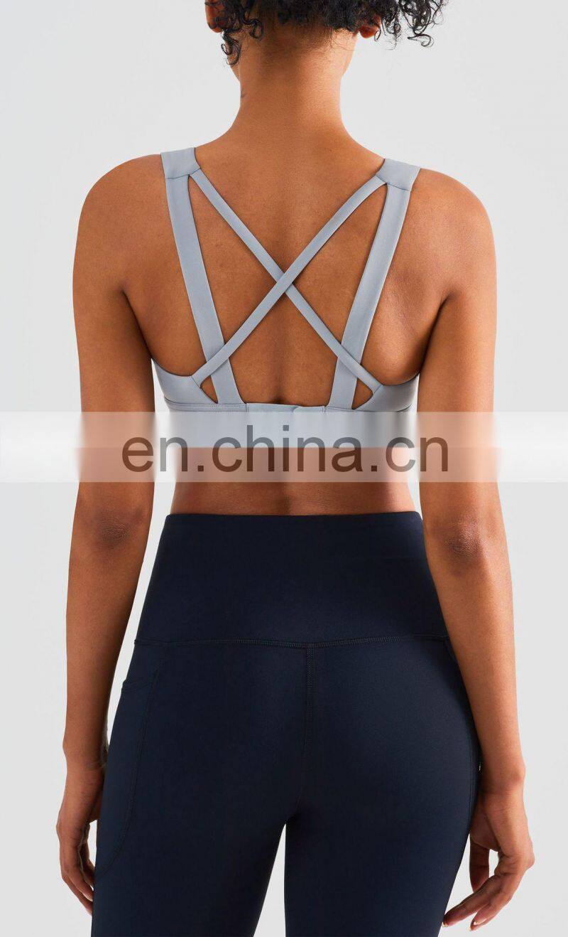 Wholesale Quick Dry Breathable High Quality Ladies Sexy Workout Top Custom Gym Fitness Yoga Bra Cross Back Sports Bra For Women