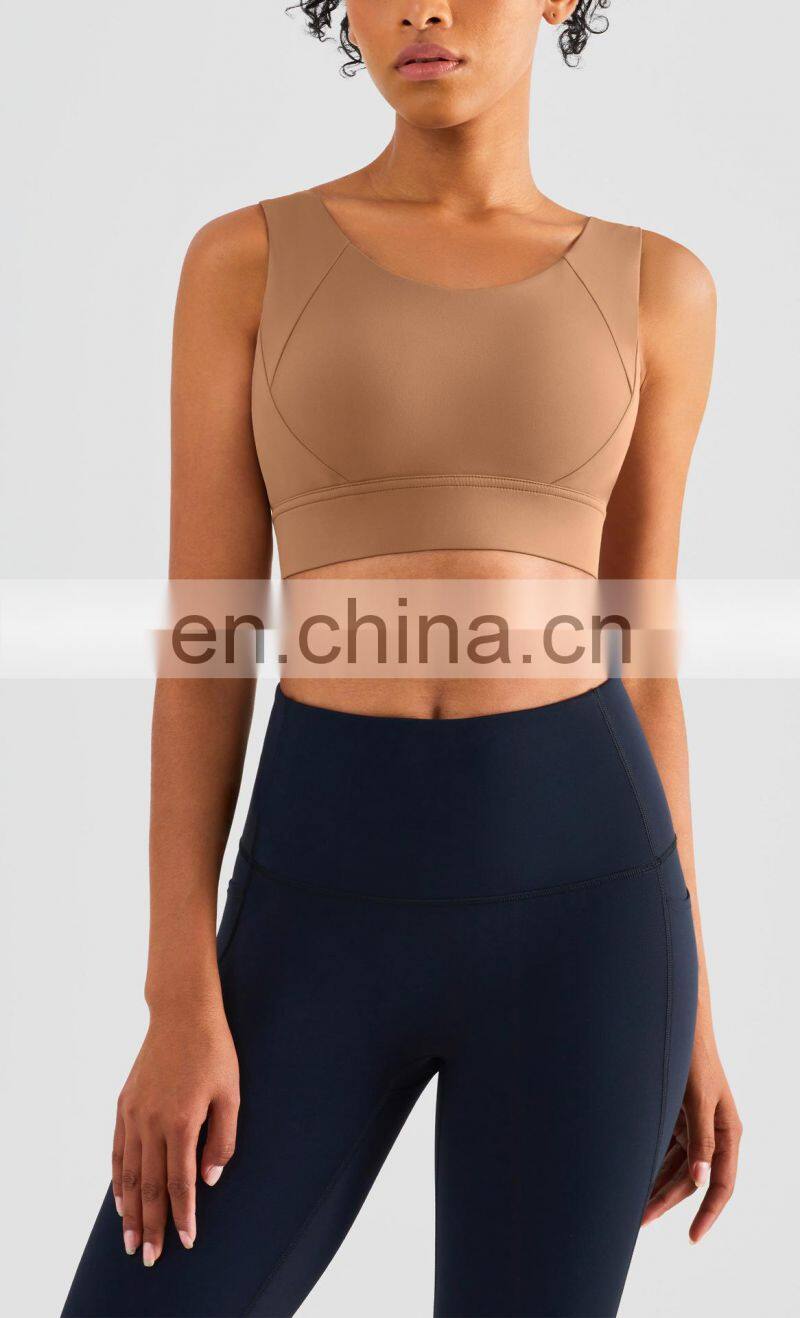 High Quality Ladies Top Wide Straps Sports Bra Custom Sexy Workout Wear Gym Fitness Tank Top For Women With Padded