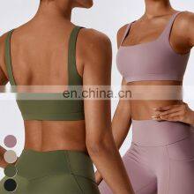 Wholesale Hot Ribbed Patchwork Square Neck Fixed Padded One Piece Adjustable Yoga Bra Top Women Gym Sports Fitness Wear
