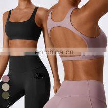 Wholesale Active Bras Running Workout Wear Shockproof Yoga Tank Top Women Gym Fitness Top High Impact Hollow Out Back Sports Bra