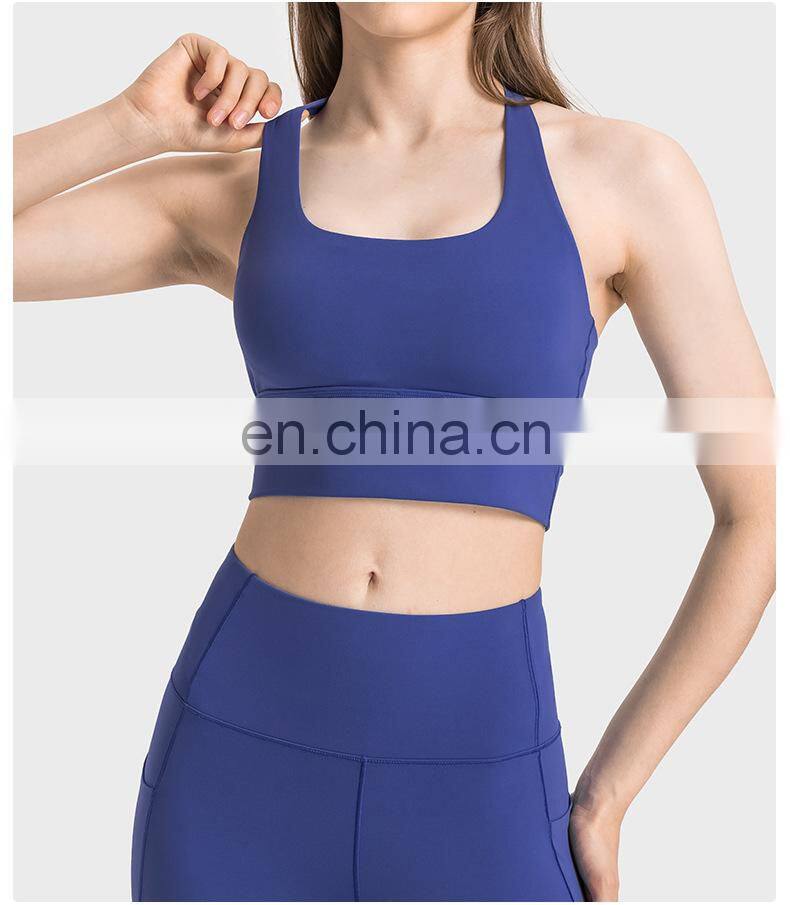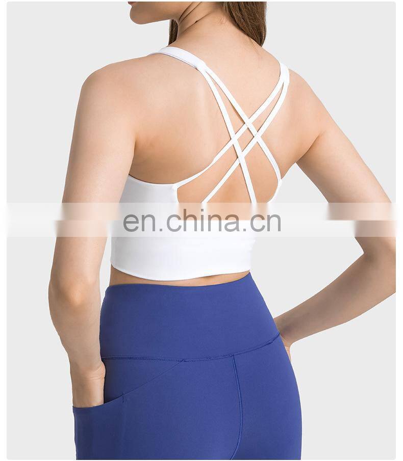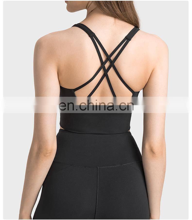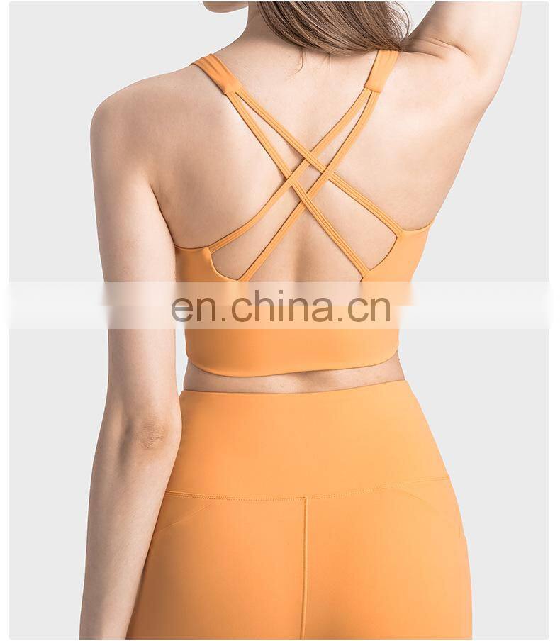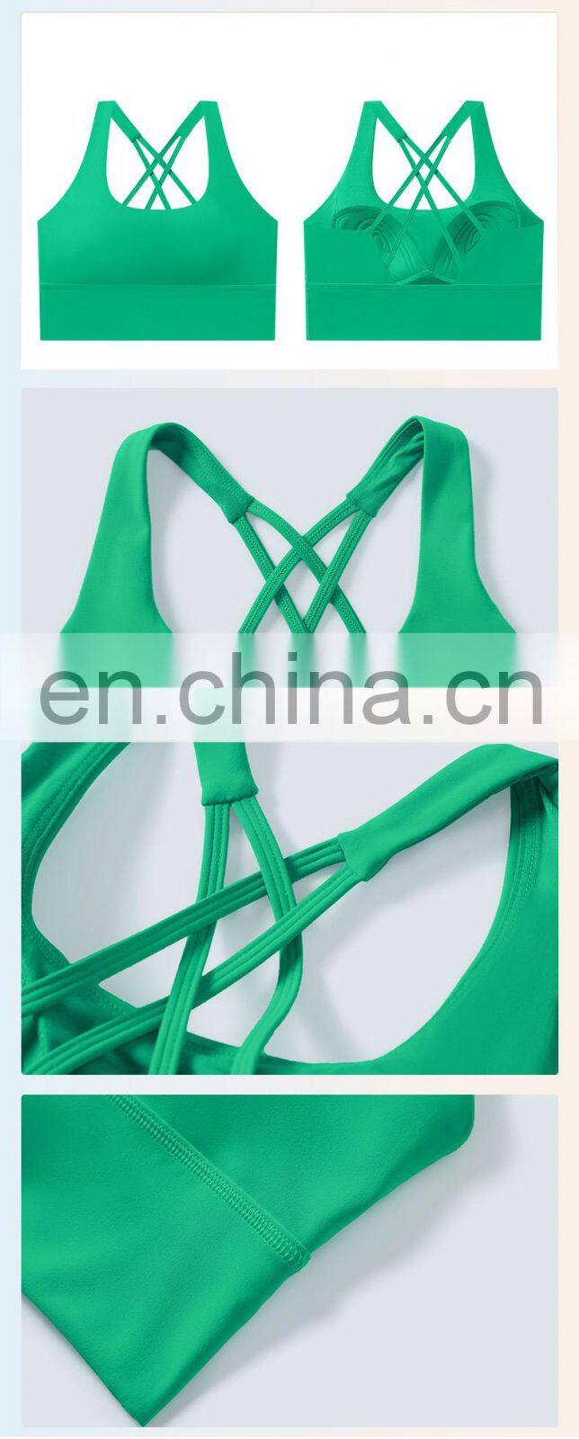 Wholesale Quick Dry Breathable High Quality Ladies Sexy Workout Top Custom Gym Fitness Yoga Bra Cross Back Sports Bra For Women