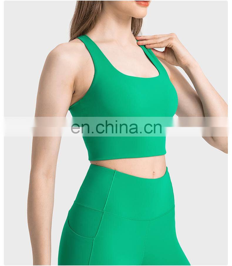 High Quality Ladies Top Wide Straps Sports Bra Custom Sexy Workout Wear Gym Fitness Tank Top For Women With Padded