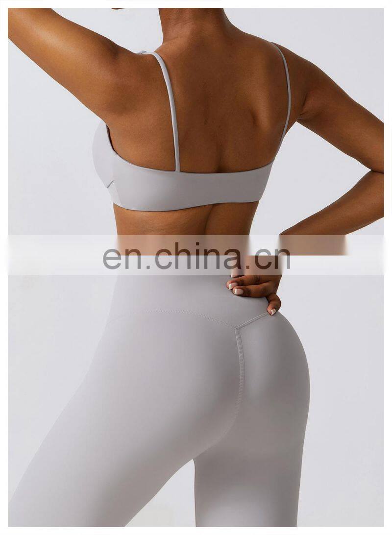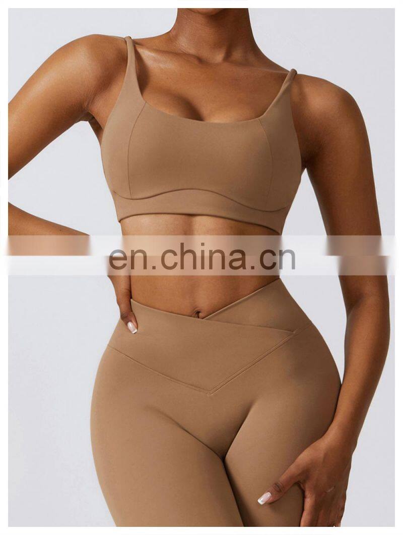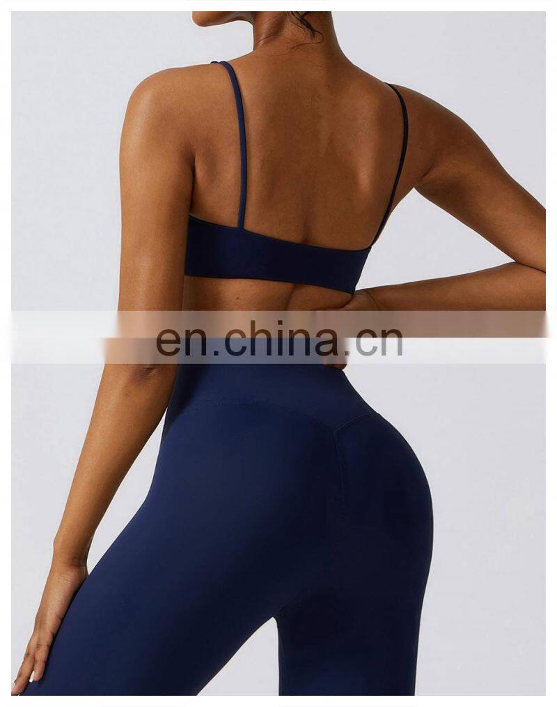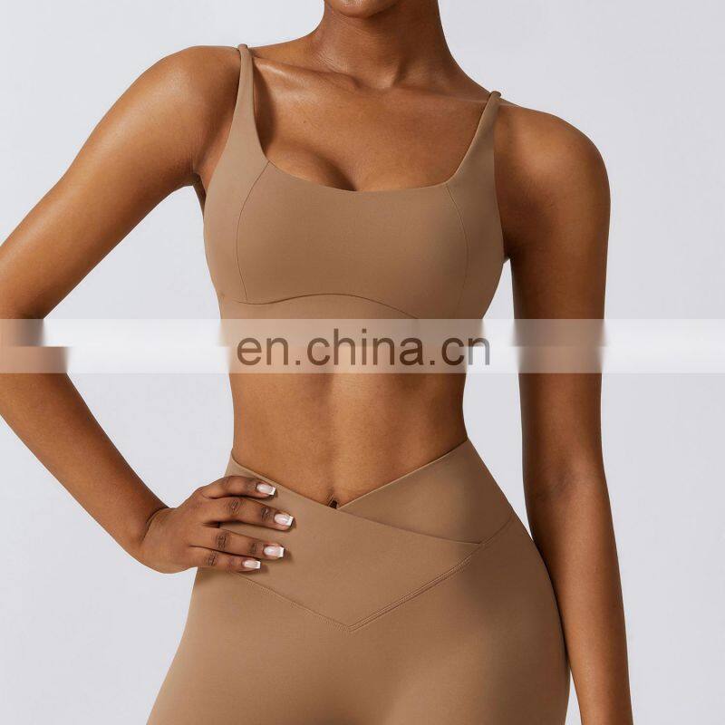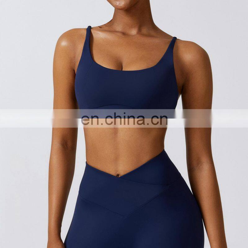 Wholesale Womens Clothing Custom Workout Wear Sexy Halter U Back Sports Top High Elastic V-neck Gym Fitness Yoga Bra Sports Bra