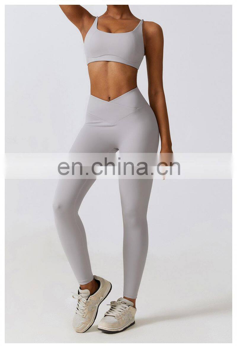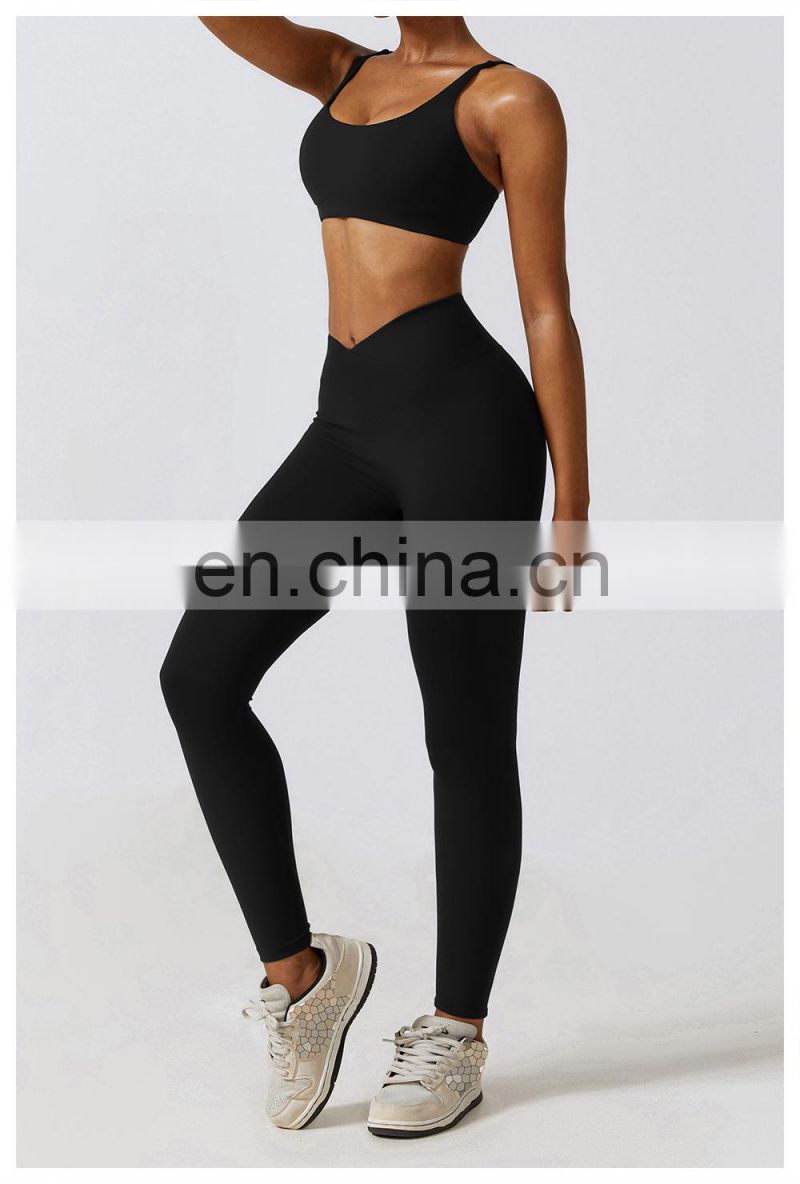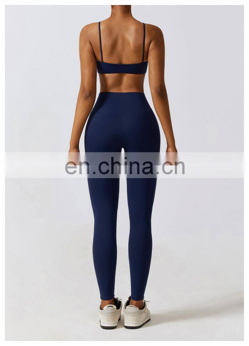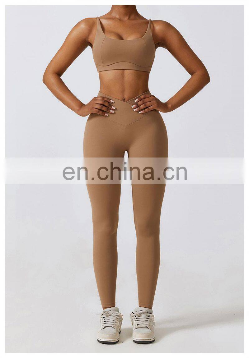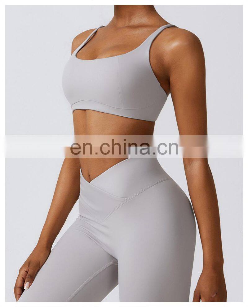 Wholesale Womens Clothing Custom Workout Wear Sexy Halter U Back Sports Top High Elastic V-neck Gym Fitness Yoga Bra Sports Bra
