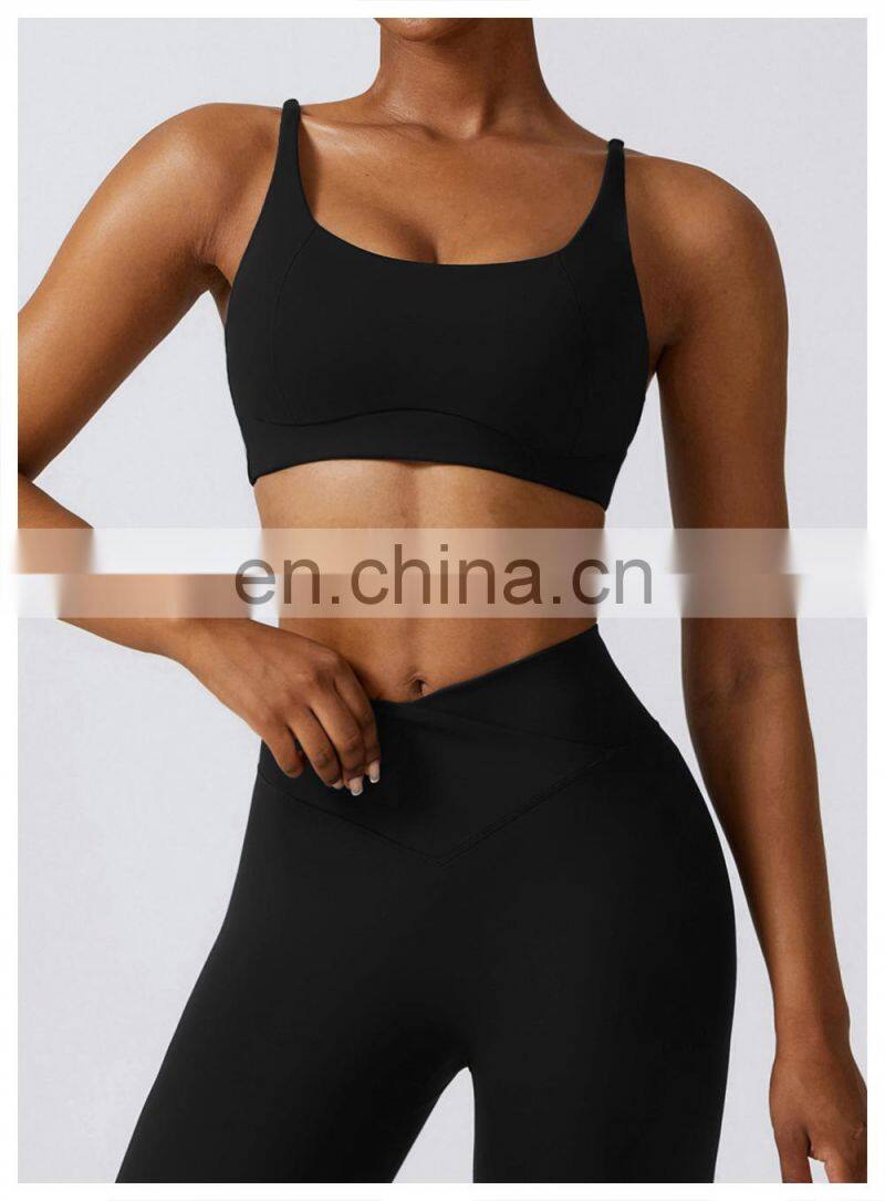 Wholesale High Quality Running Bra Custom Workout Wear Gym Fitness Yoga Top Women Shockproof Backless Strappy Sports Bra