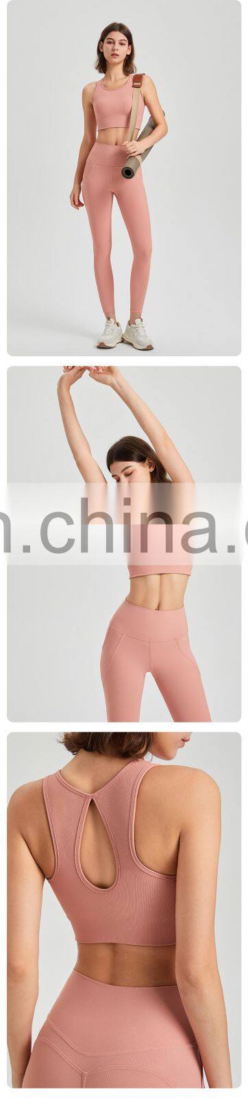 Twisted Hollow Back Shockproof Sports Bra Custom Logo Workout Wear Women Fitness Yoga Top Ribbed Sports Bra With Fixed Pads