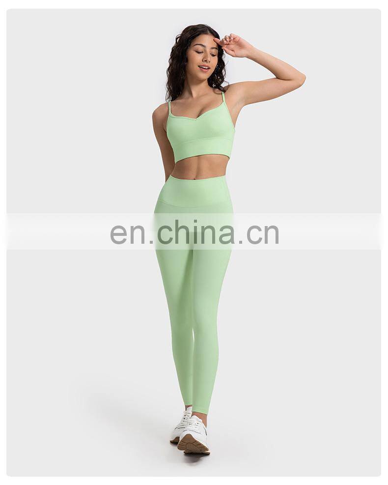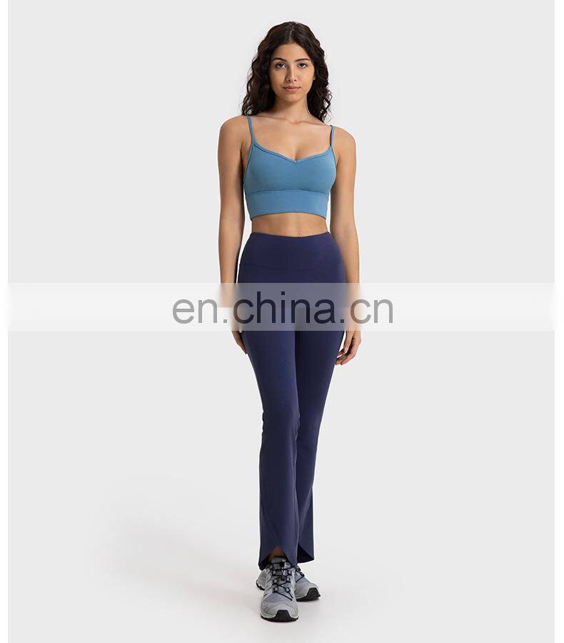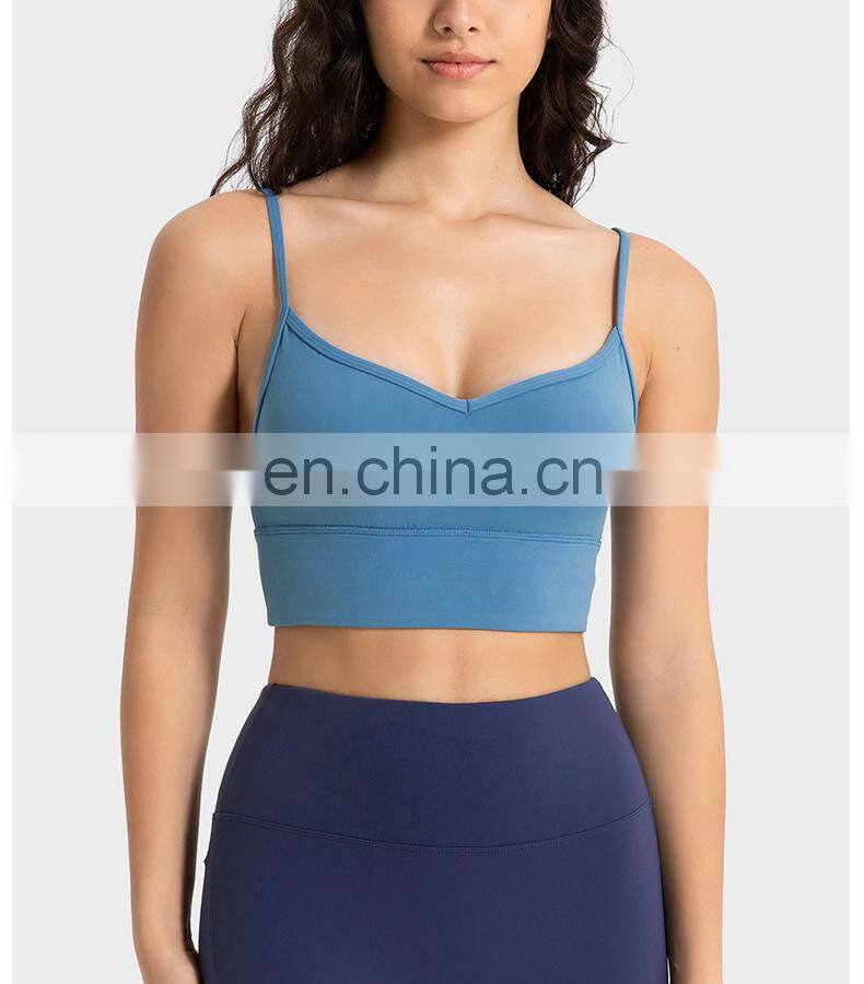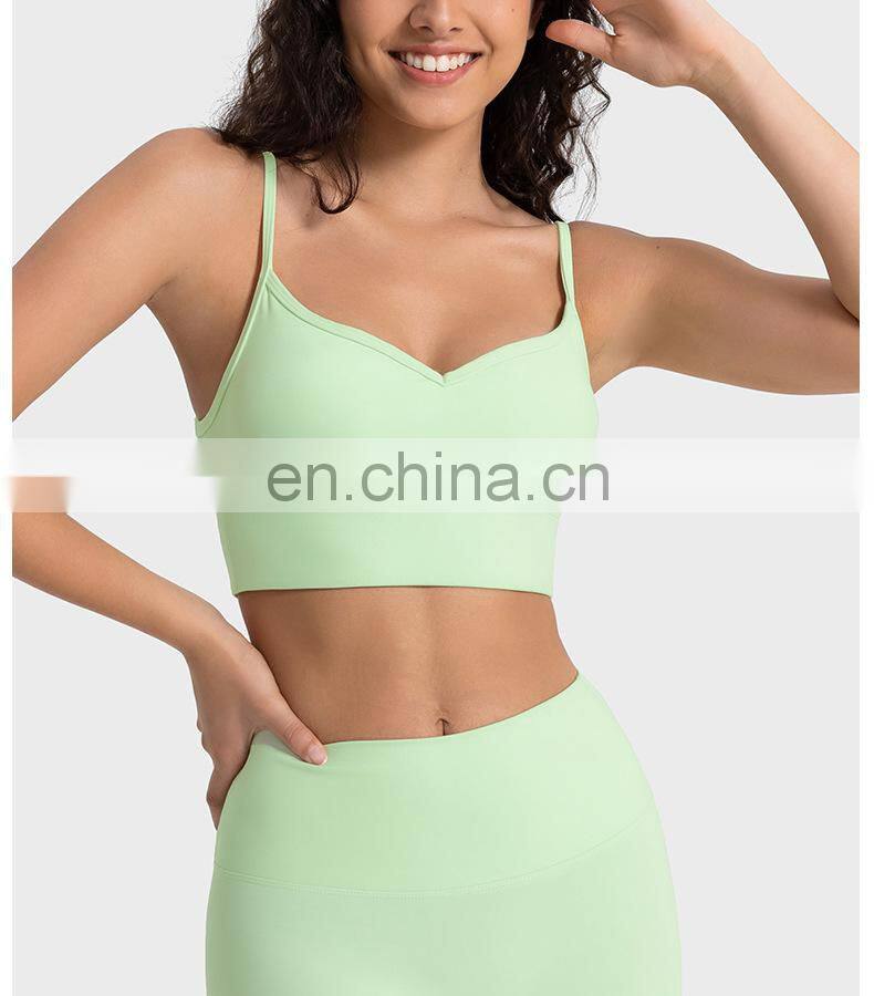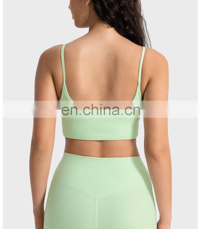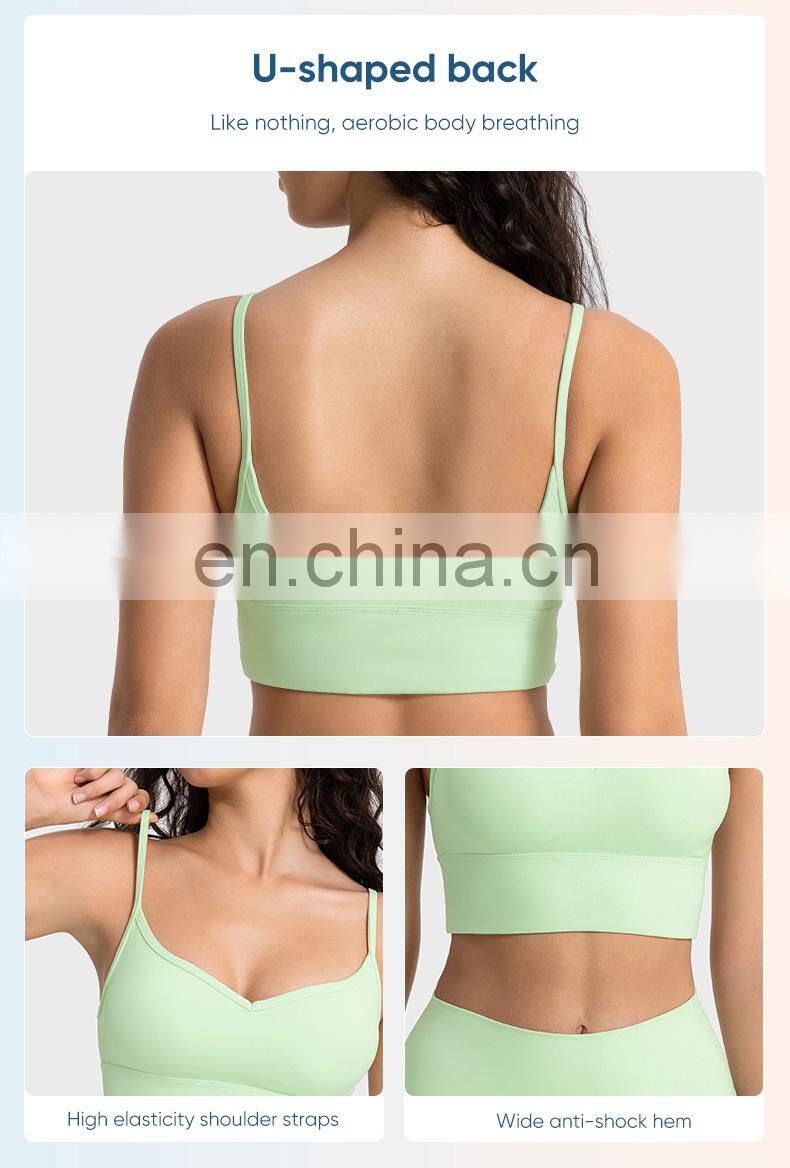 Wholesale Womens Clothing Custom Workout Wear Sexy Halter U Back Sports Top High Elastic V-neck Gym Fitness Yoga Bra Sports Bra