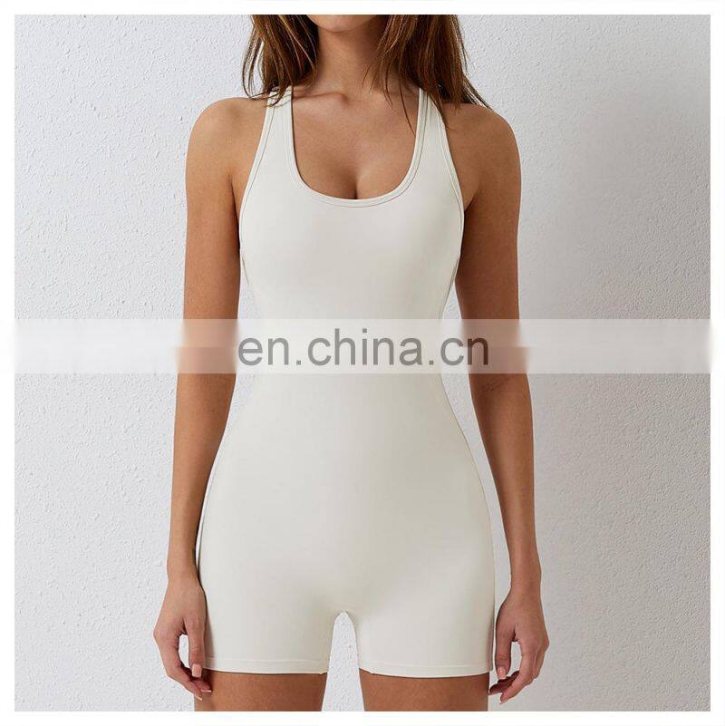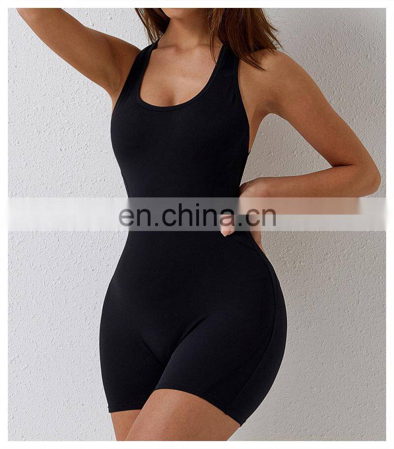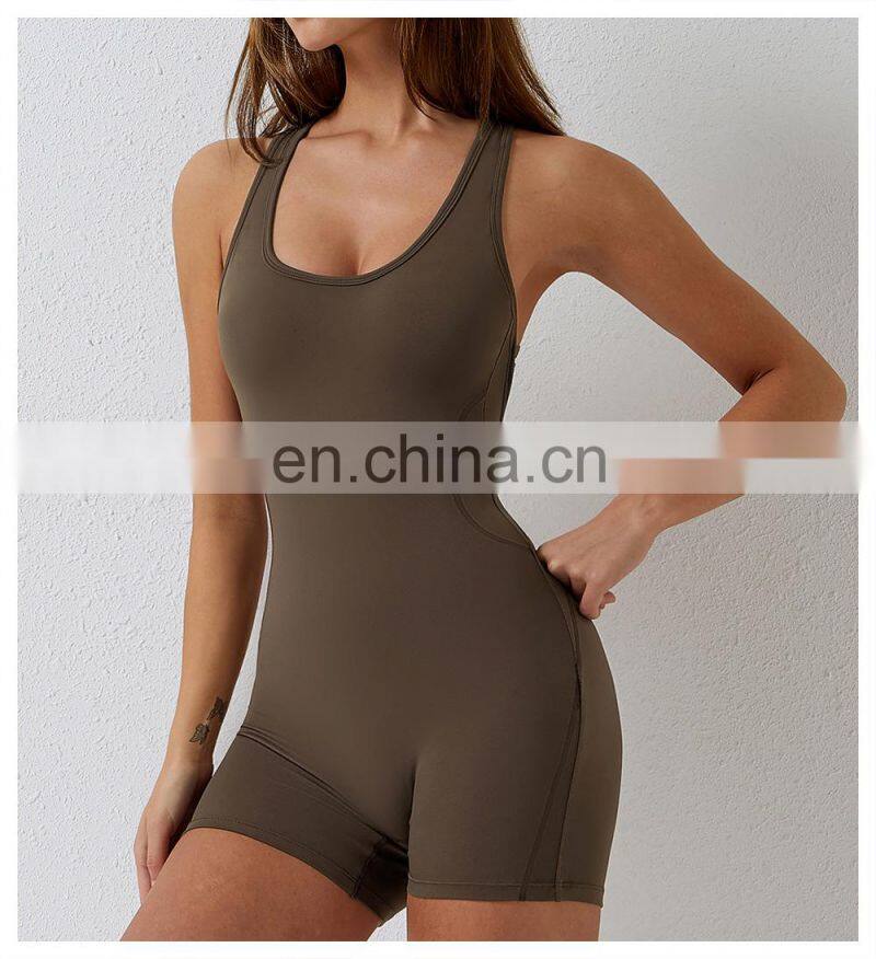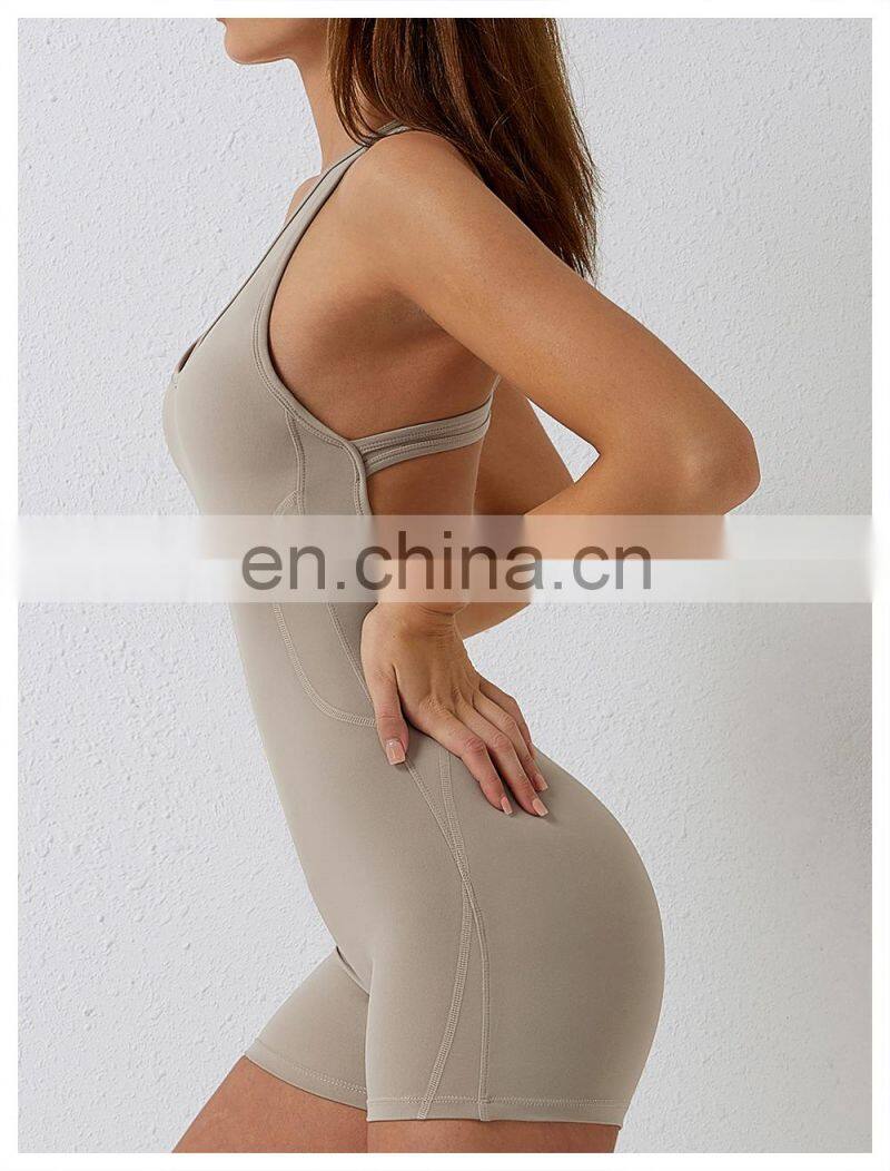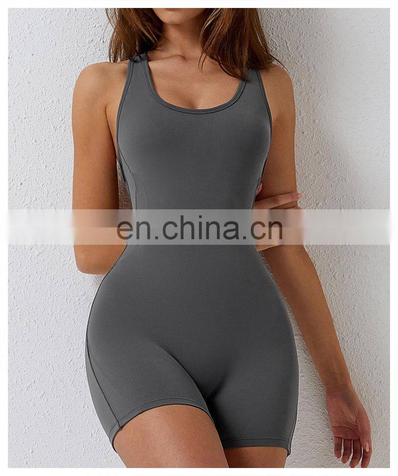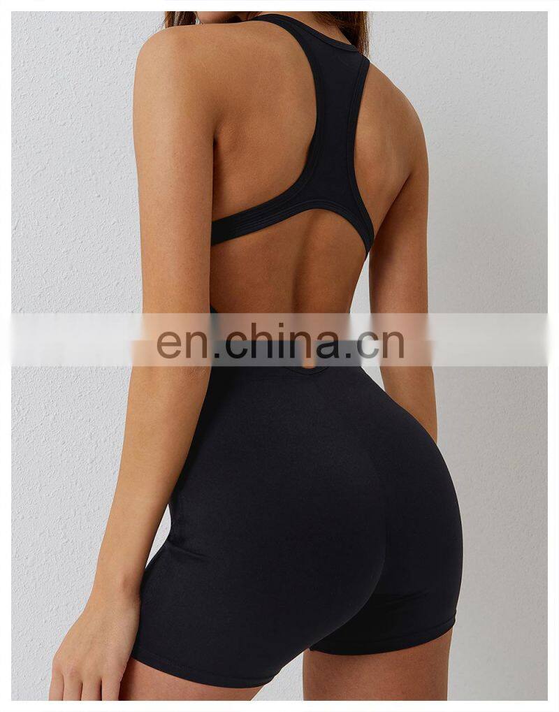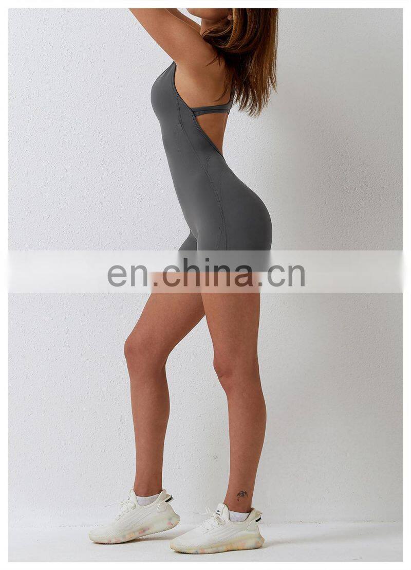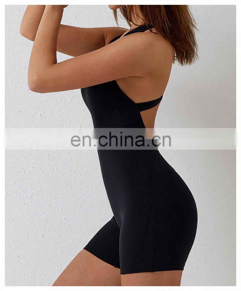 Sexy Rompers Sports Sets Workout Bodysuit Gym Fitness Jumpsuits Sleeveless Cross Back One Piece Short Yoga Jumpsuit For Women