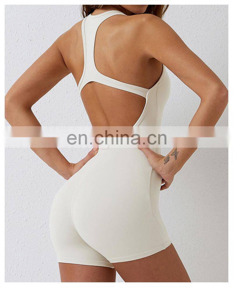 Breathable Sports Rompers Workout Bodysuit Custom Gym Fitness Sets Women Sleeveless Halter One Piece Short Yoga Jumpsuit