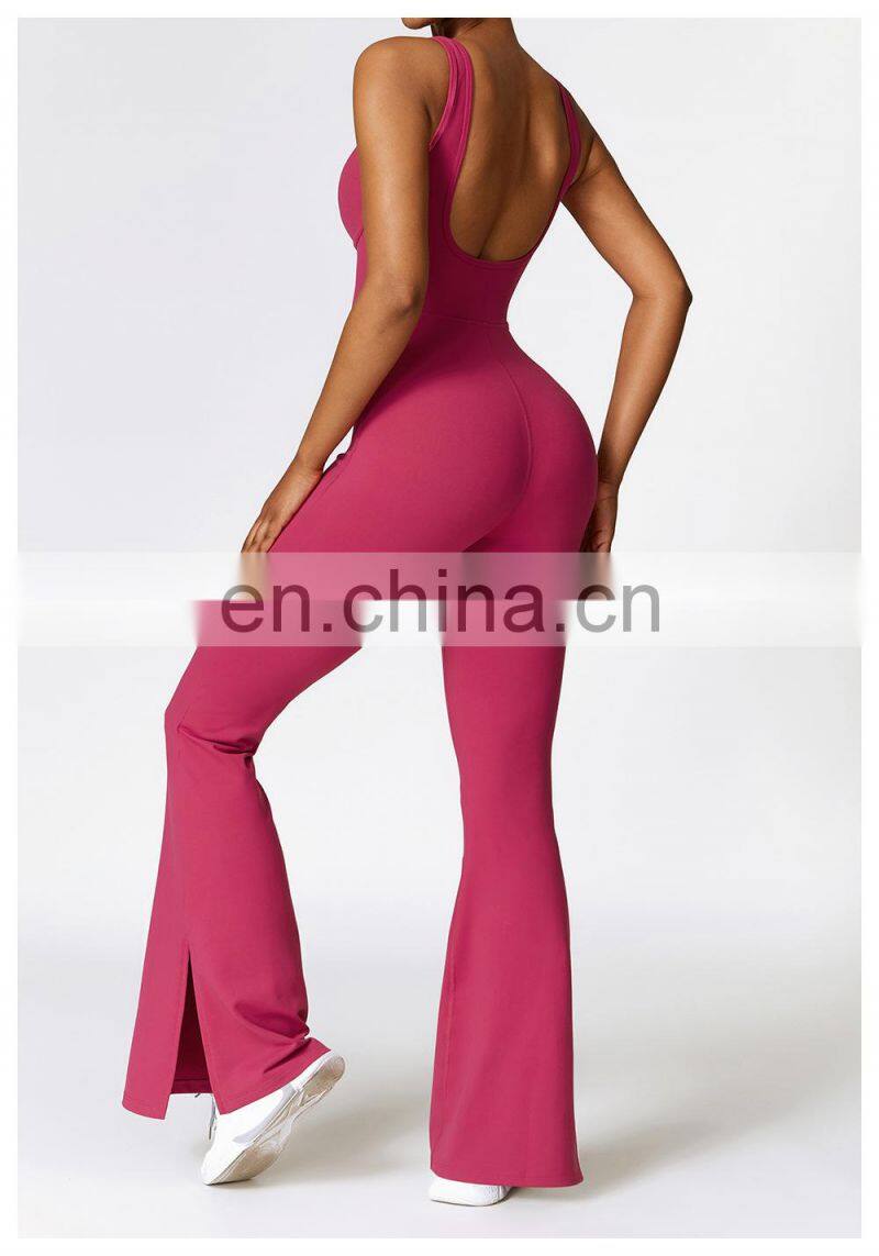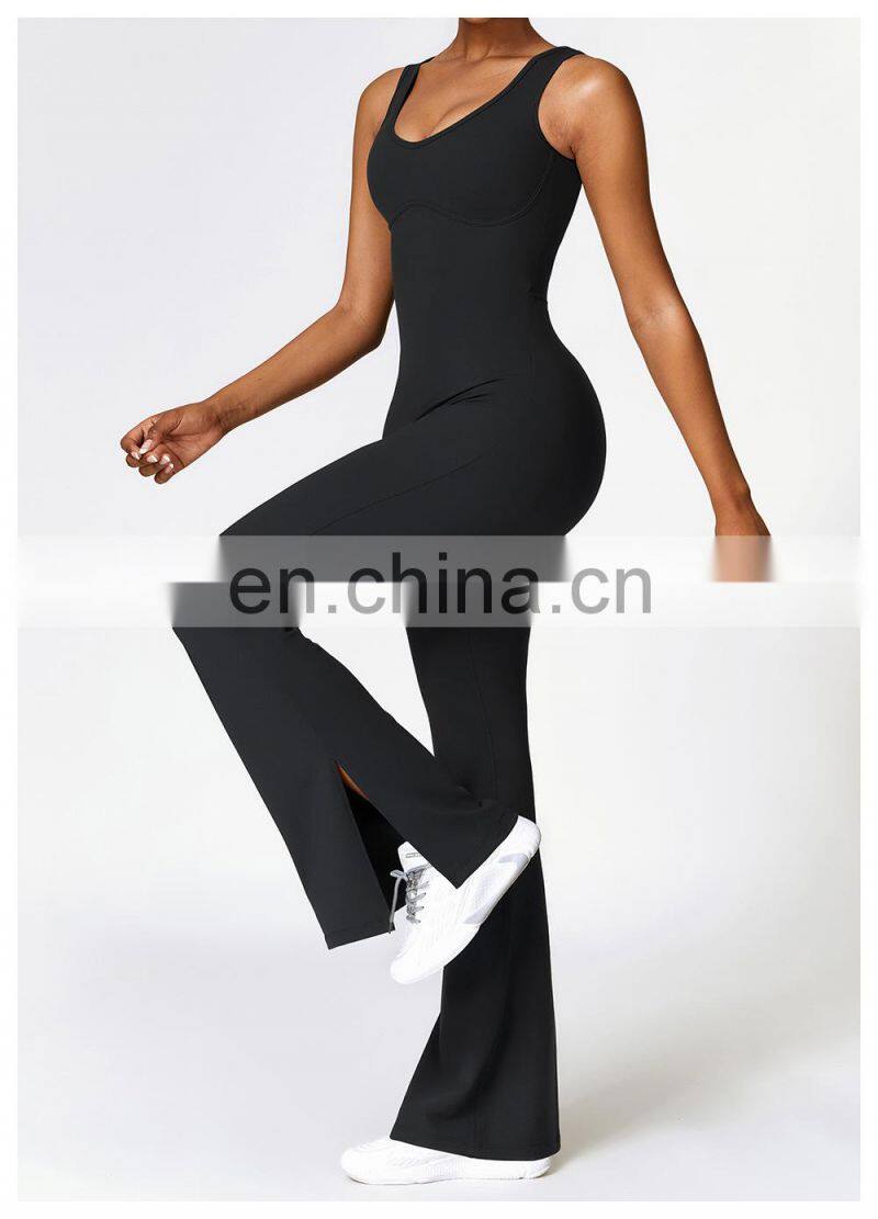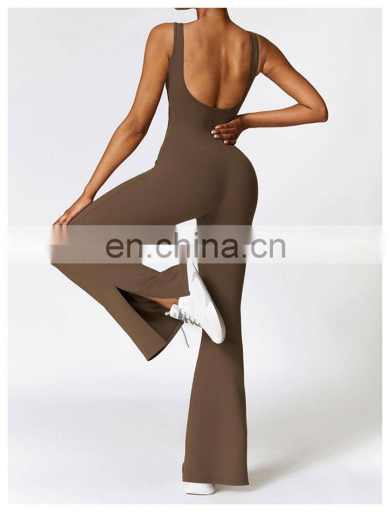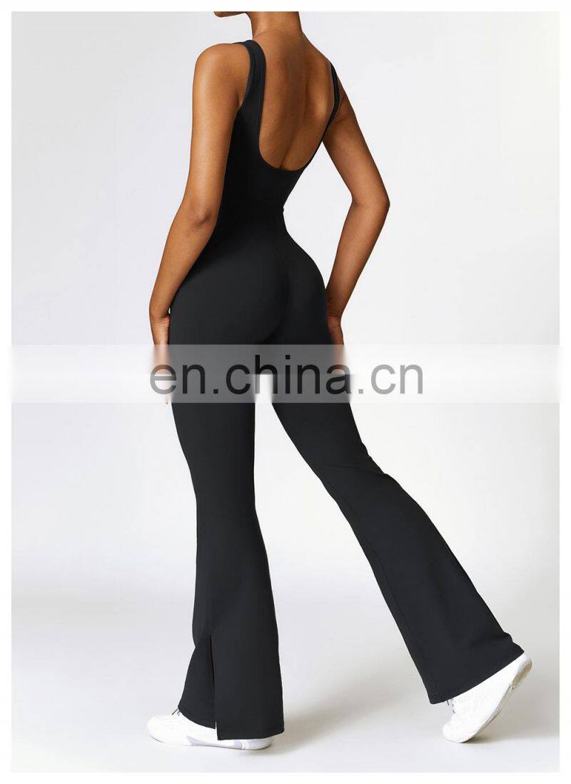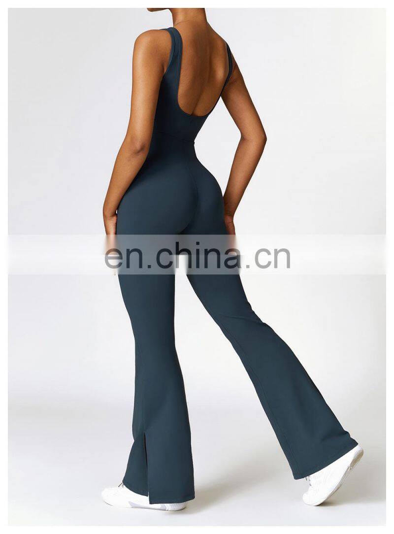 Women Clothing Sexy Open Flare Big U Back Bodysuit Custom Sports Jumpsuits Gym Fitness Bodysuit Women One Piece Yoga Jumpsuit