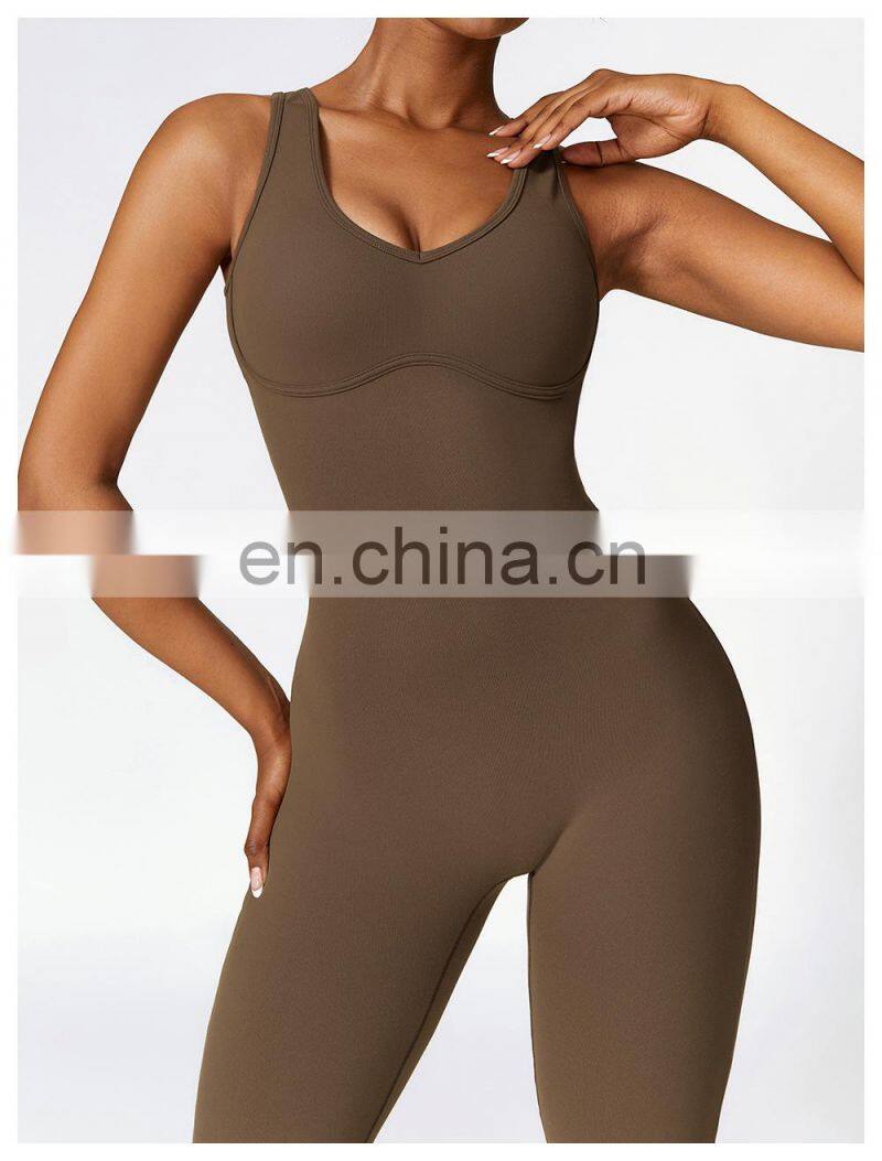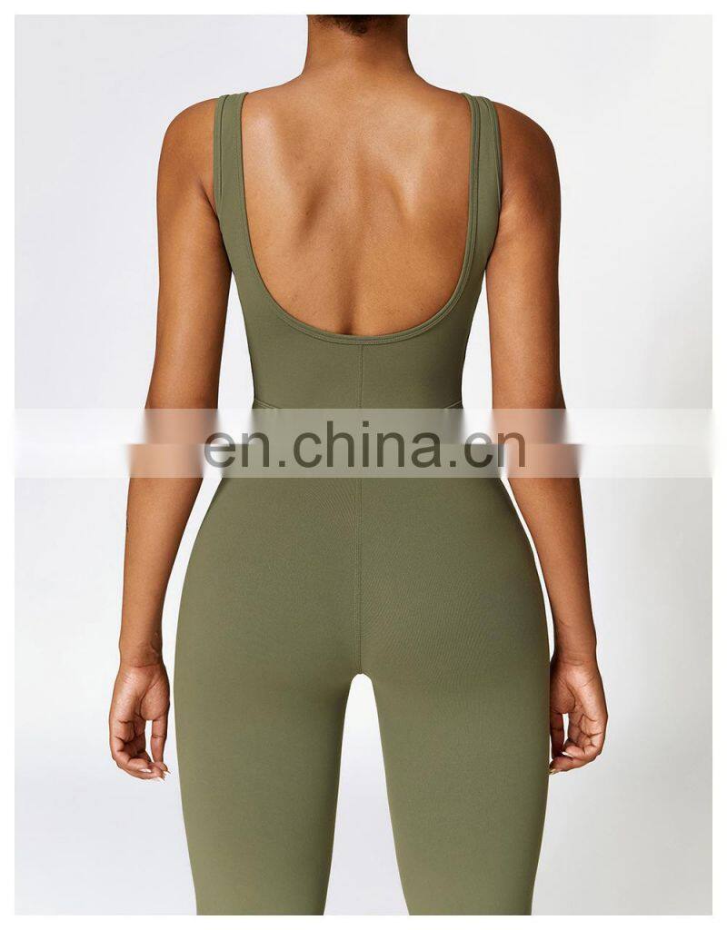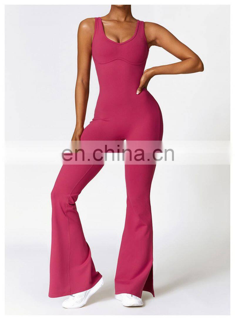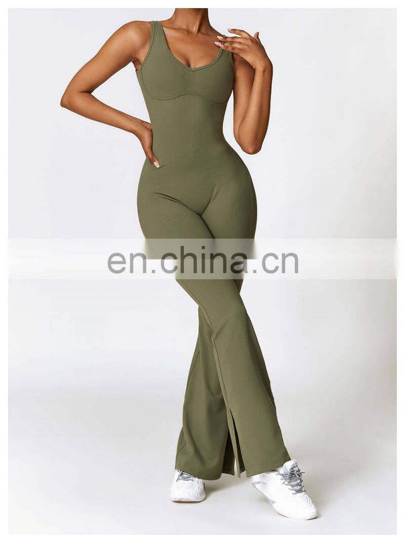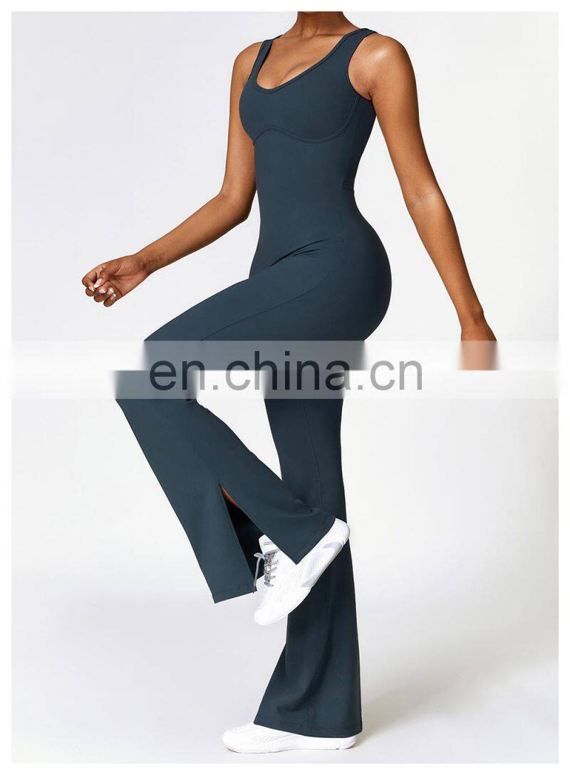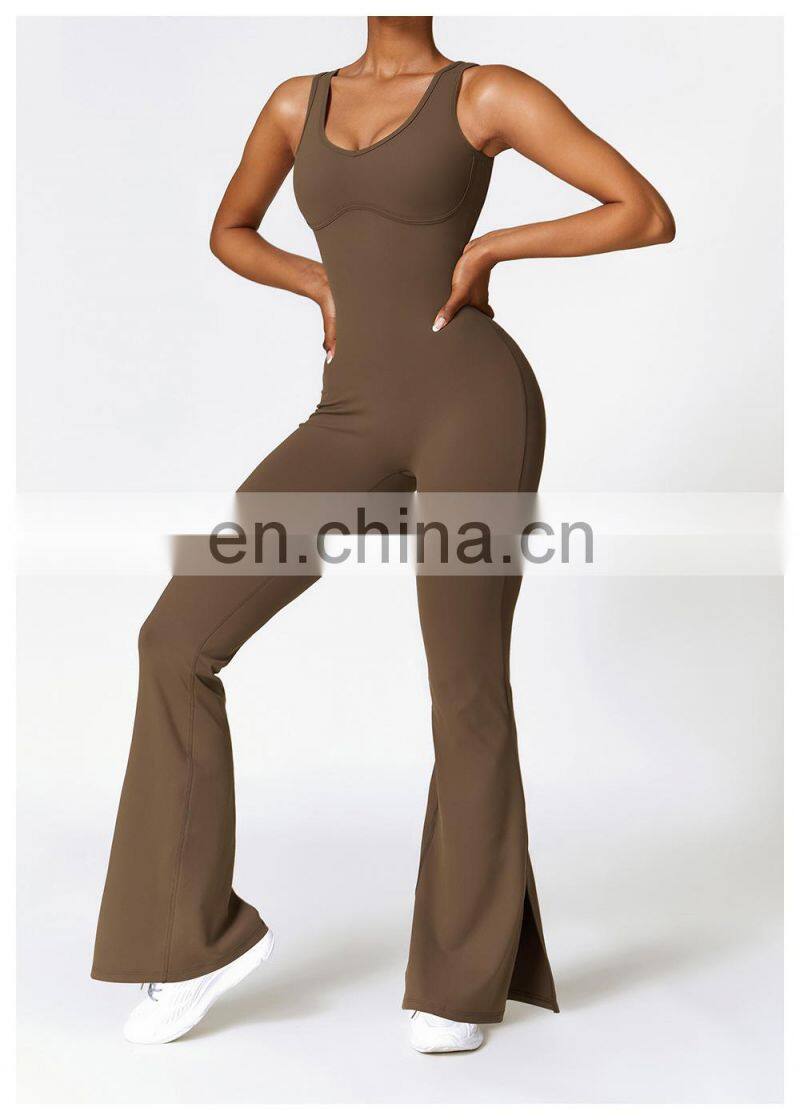 Women Clothing Sexy Open Flare Big U Back Bodysuit Custom Sports Jumpsuits Gym Fitness Bodysuit Women One Piece Yoga Jumpsuit